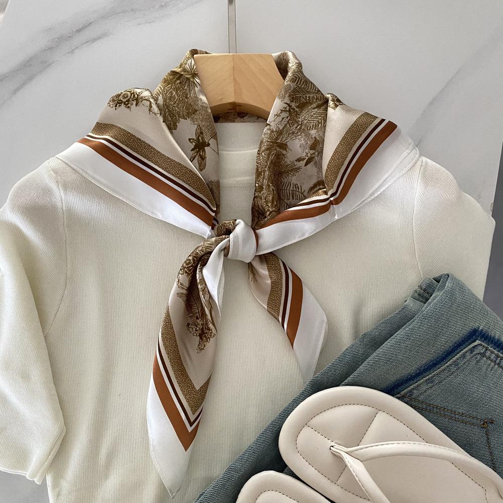 Regalos navideños Elegante bufanda de seda para mujer Bufanda de seda morera para todo tipo de primavera y verano Bufanda decorativa para traje Bufanda cuadrada mediana