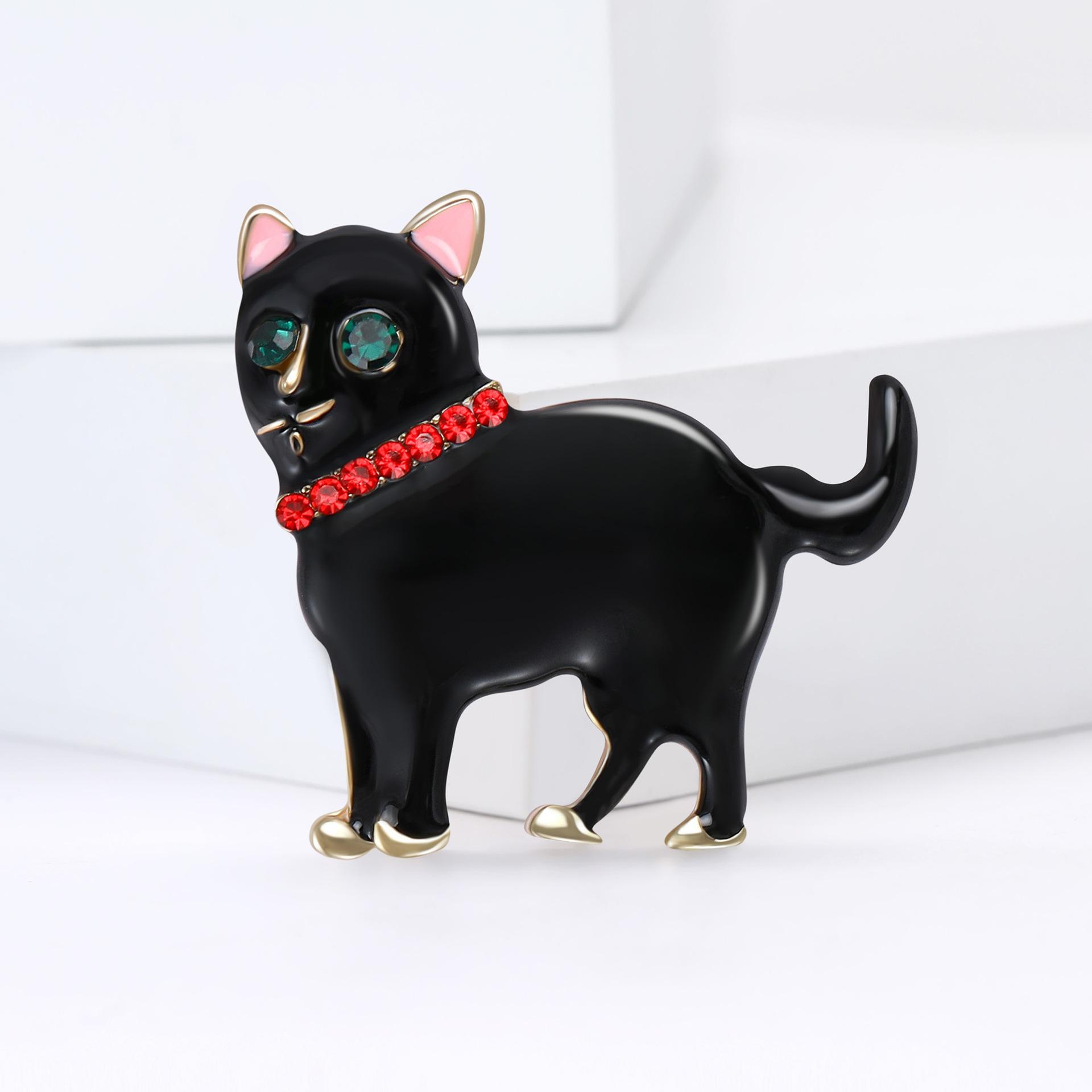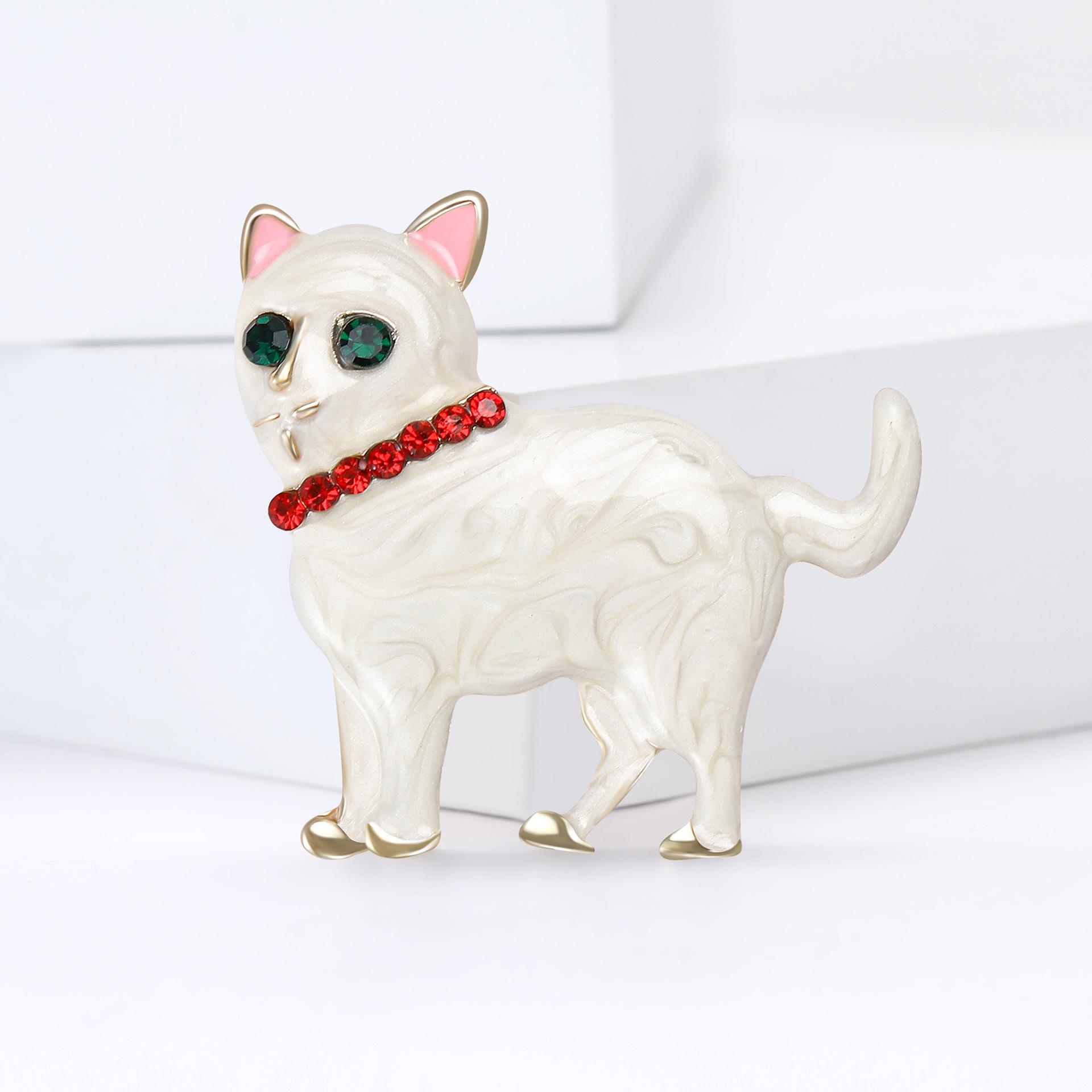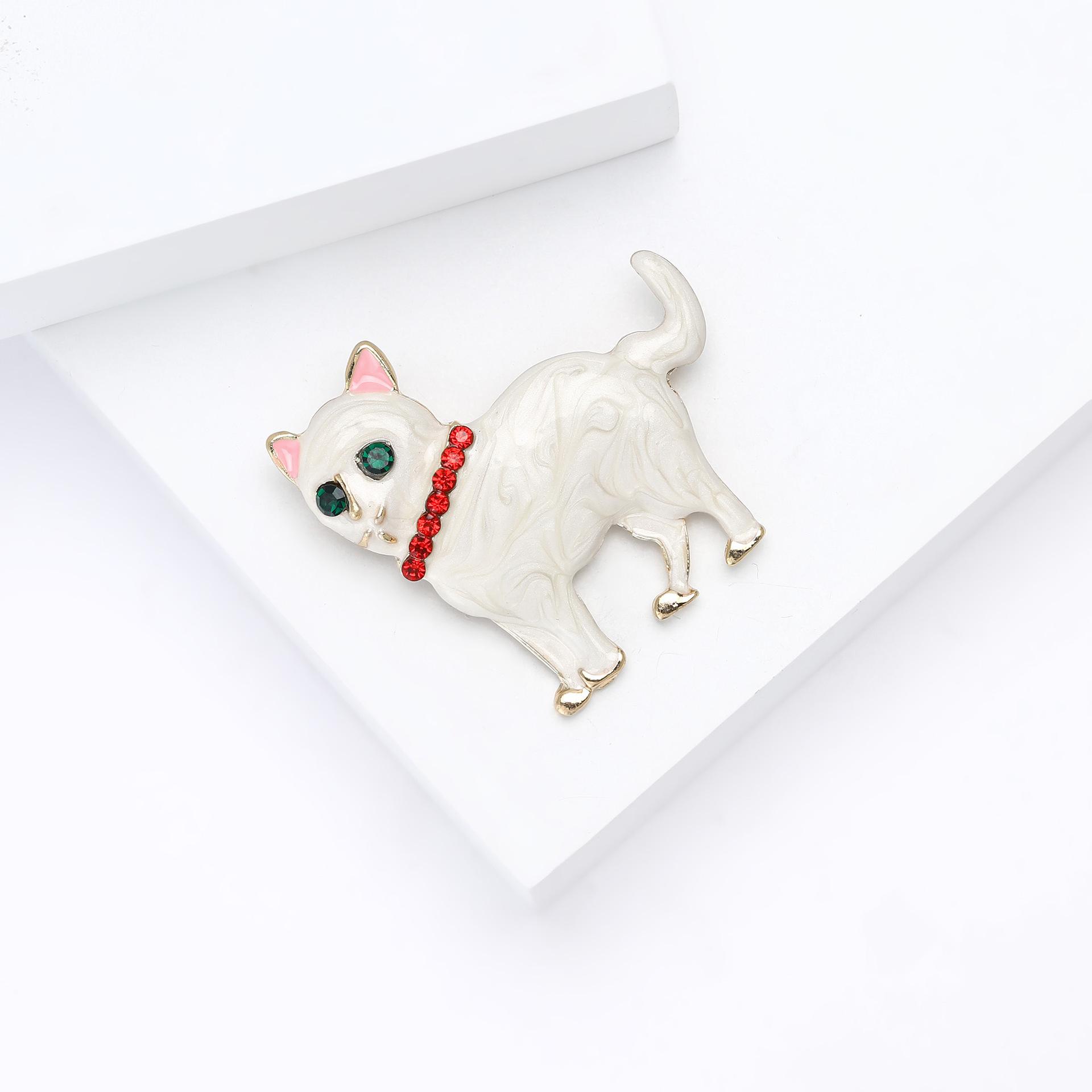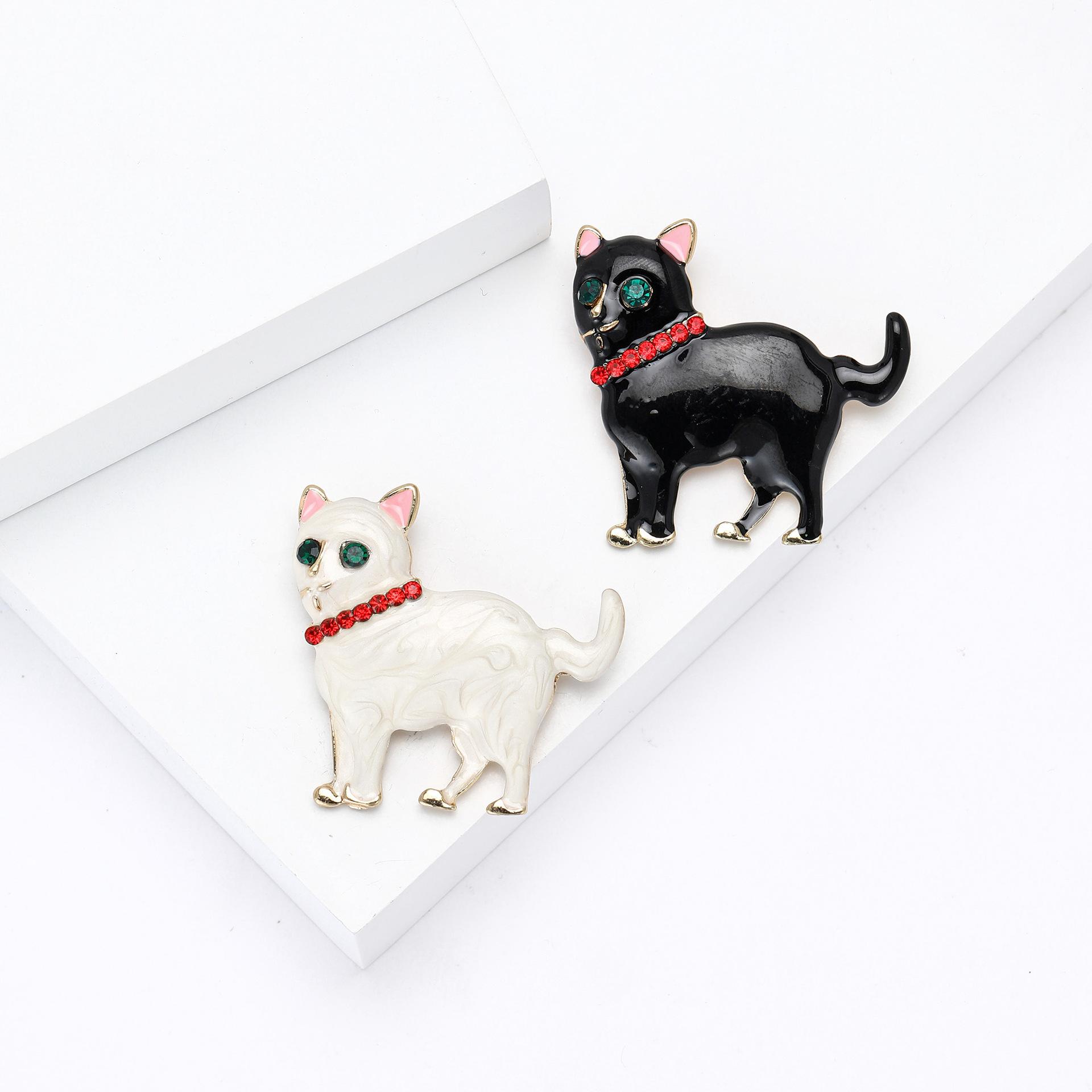 Broche de Gato Clásico de Moda Lindo de Aleación Esmaltado con Pedrería Broche Sencillo y Juguetón para Ropa de Mujer Corsage Pin de Joyería