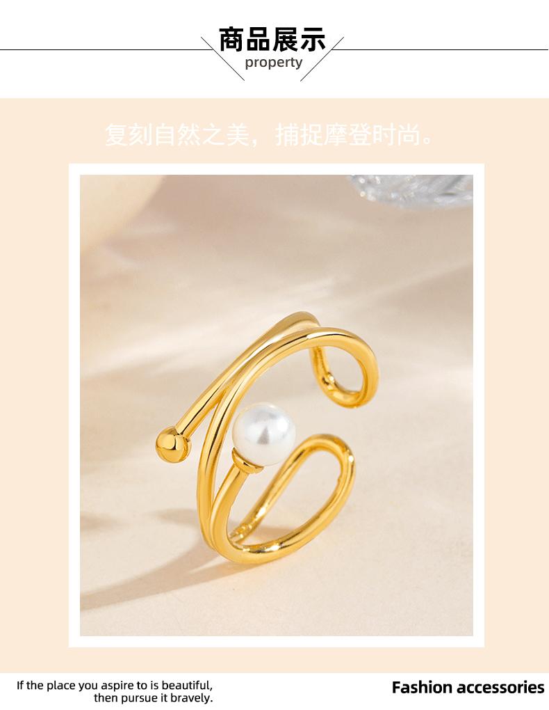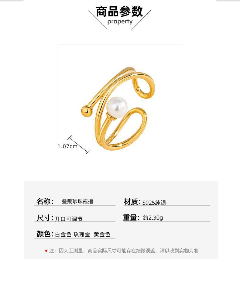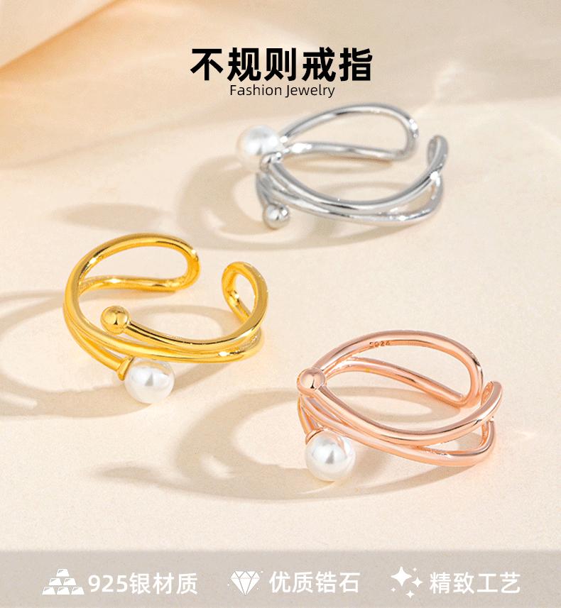 Anillo de perlas irregulares de plata esterlina S925 para niñas, anillo liso de nicho, anillo de unión, anillo de extremo