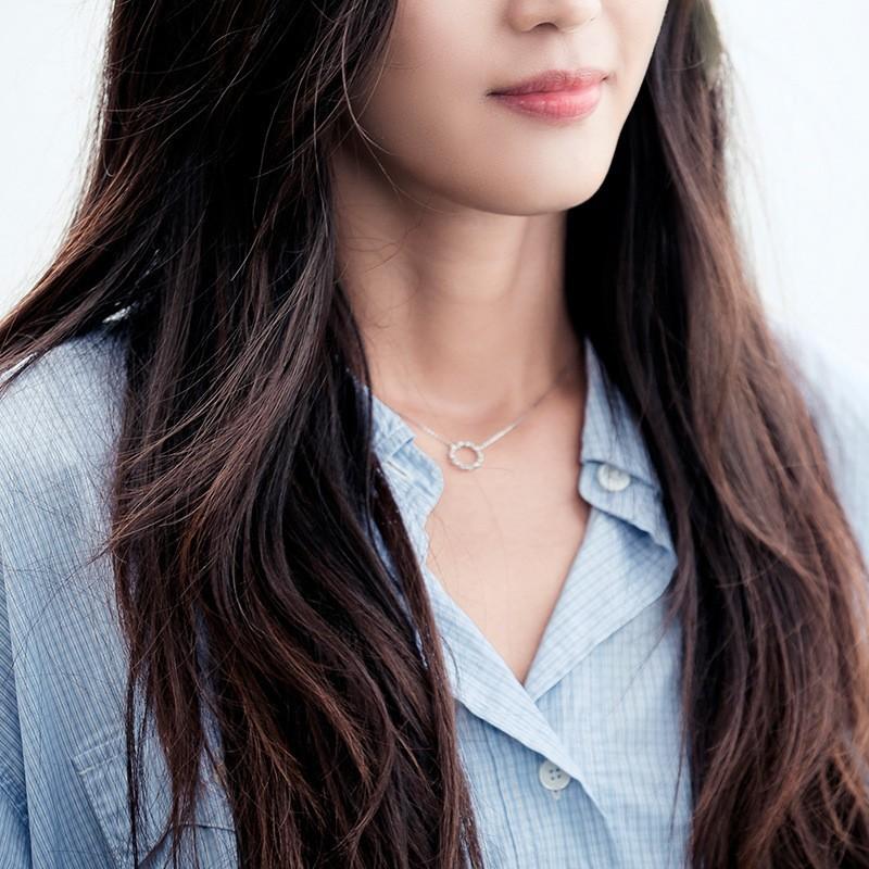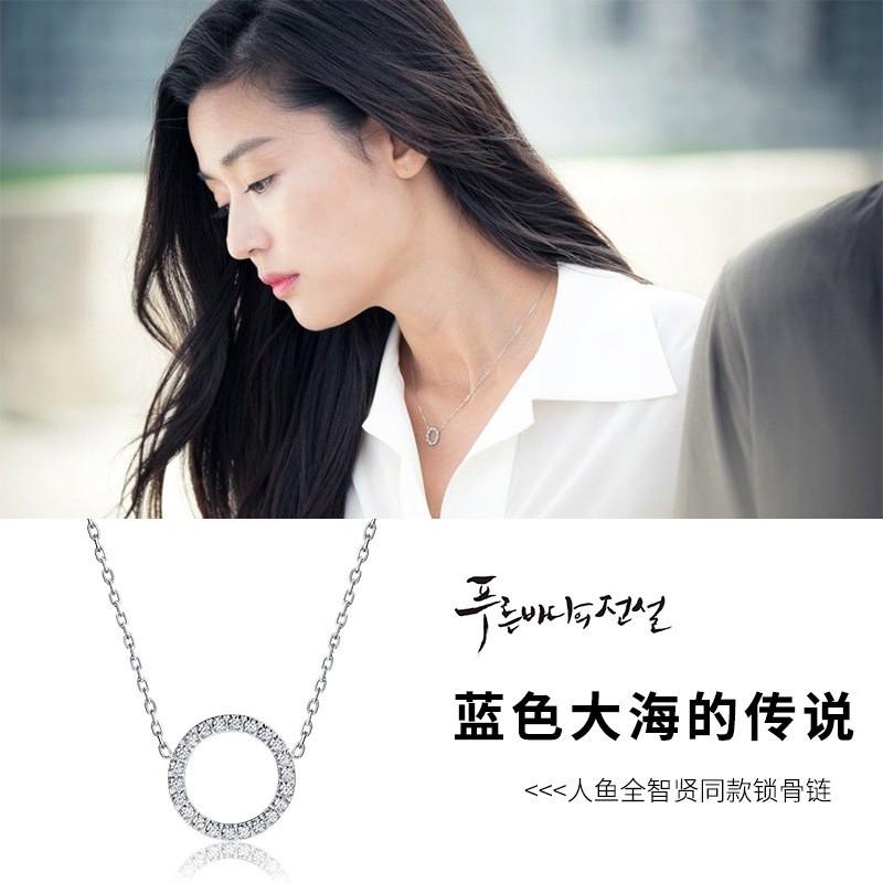 Collar circular de plata de ley S925 con forma de estrella, cadena de clavícula con diseño de serie de televisión no convencional, color azul marino.