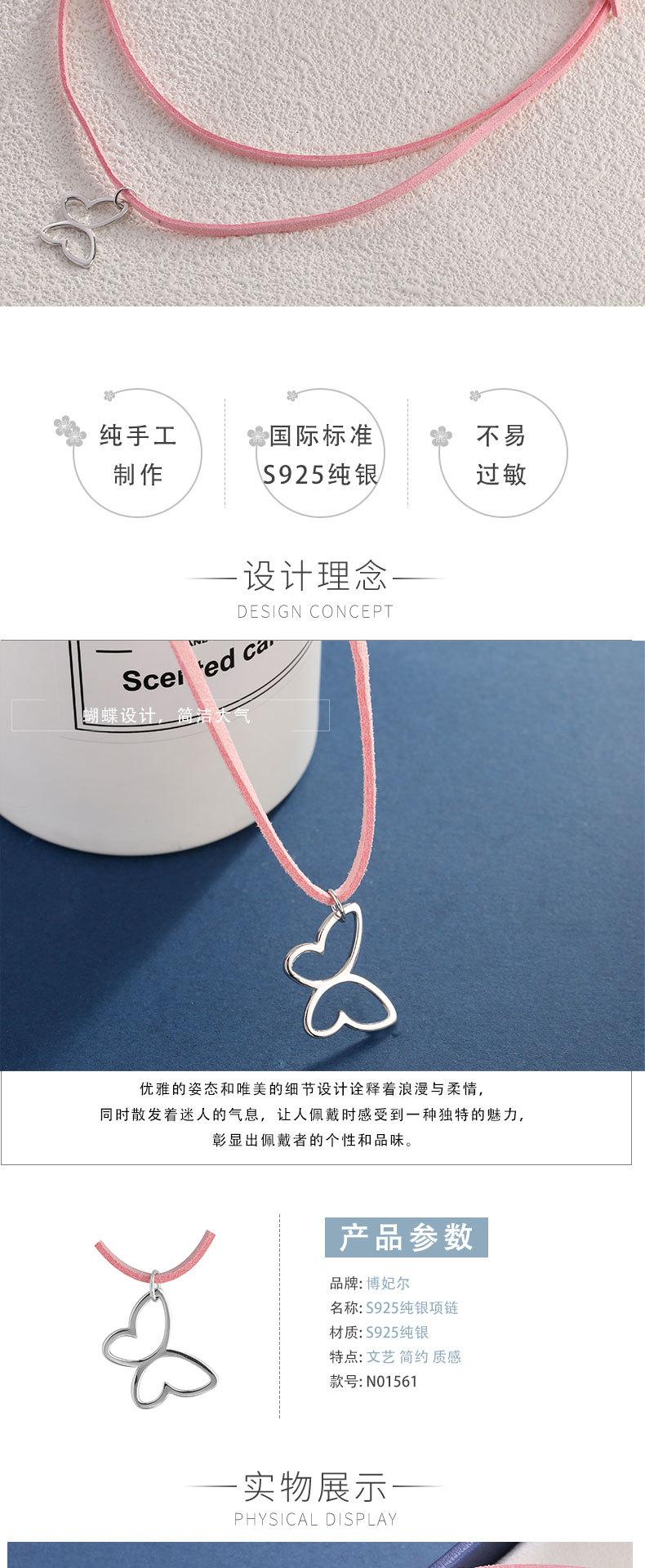 Collar con colgante de mariposa de plata esterlina S925 hecho a mano de Bofeier, diseño de nicho, estilo sencillo con bordes cruzados.