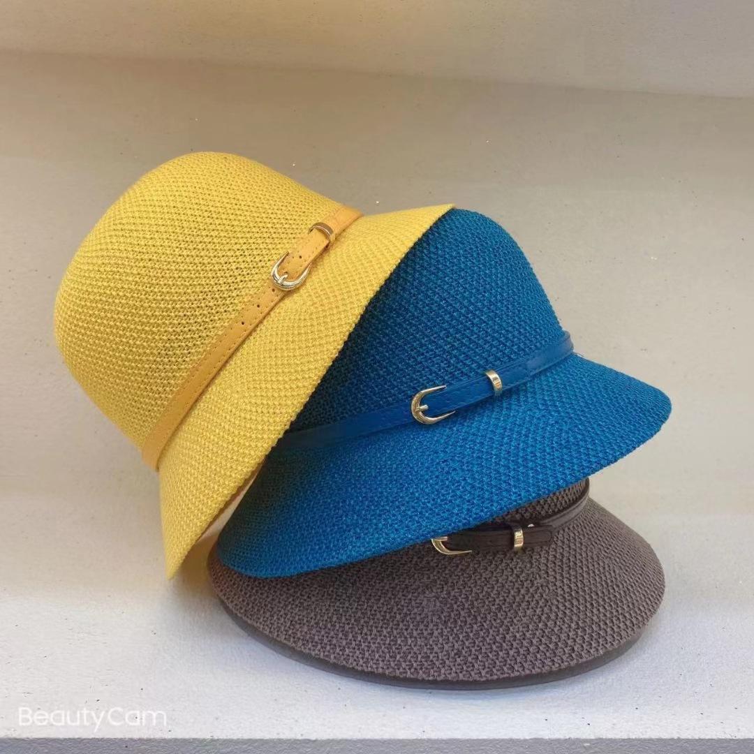 Sombrero de pescador con hebilla de cinturón japonés para primavera y verano, sombrero de lavabo con temperamento, sombrilla de moda para niños, sombrero de sol de viaje transpirable y hueco