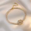 Pulsera Geométrica Ajustable de Circonita Micro-incrustada con Flor Rosa de Moda Pulsera Sencilla para Mujer