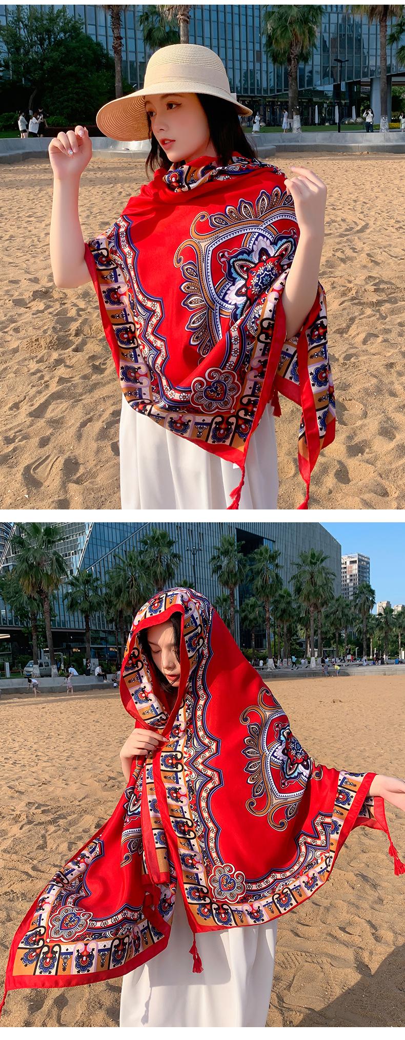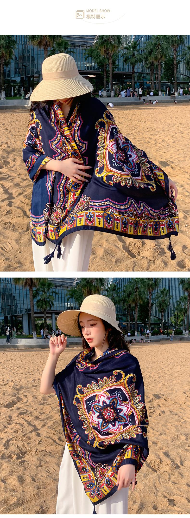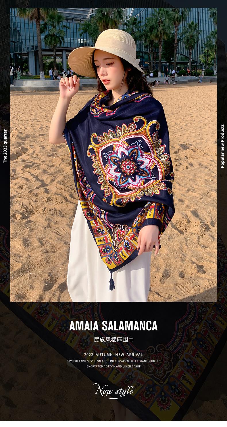 Bufanda de seda decorativa retro de moda fina de primavera y otoño de 2023, bufanda de algodón y lino de estilo étnico con aire acondicionado de verano y borlas.