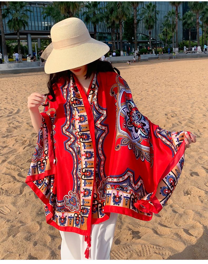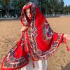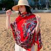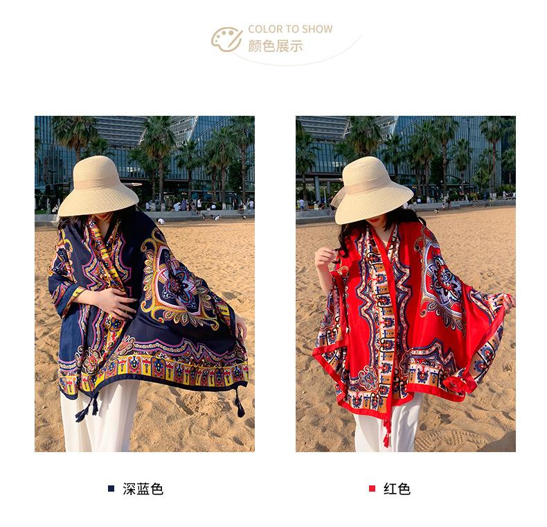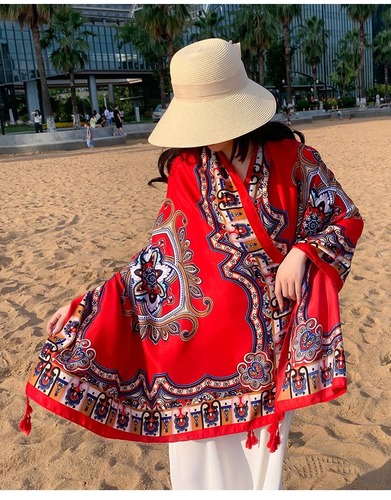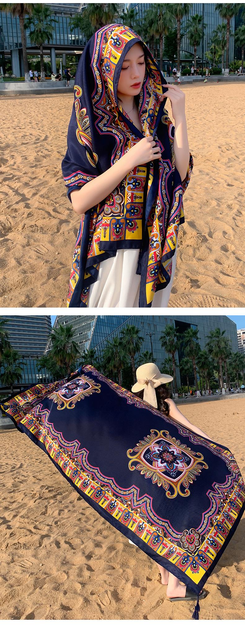 Bufanda de seda decorativa retro de moda fina de primavera y otoño de 2023, bufanda de algodón y lino de estilo étnico con aire acondicionado de verano y borlas.