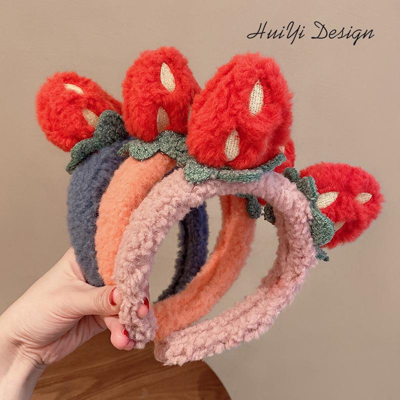 Diadema de fresa tridimensional para chica famosa de Internet, diadema dulce Mori, banda para el cabello para lavarse la cara, maquillaje, diadema coreana.