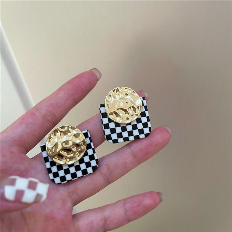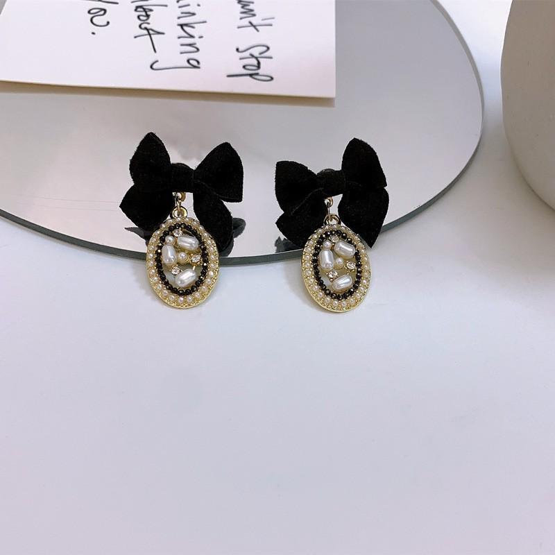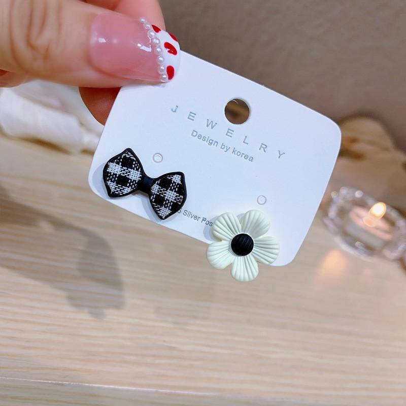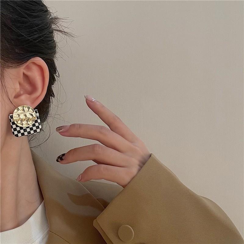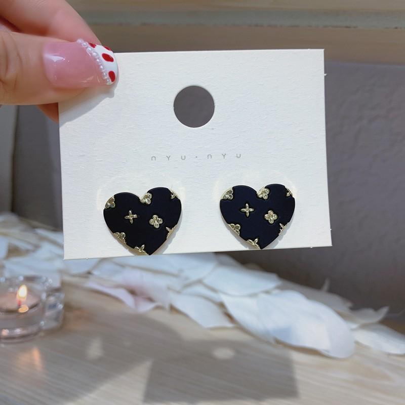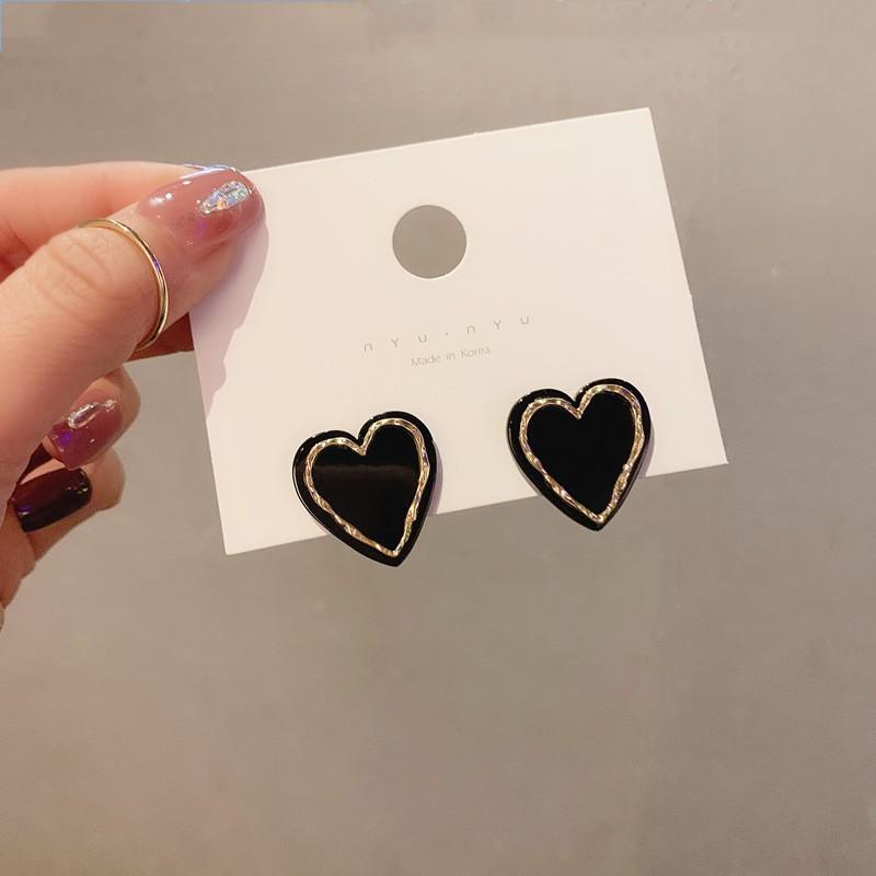 Pendientes negros con diseño de nicho de aguja de plata S925 de Dongdaemun, de Corea del Sur. Pendientes de moda sencillos y combinables con la explosión de celebridades de Internet.