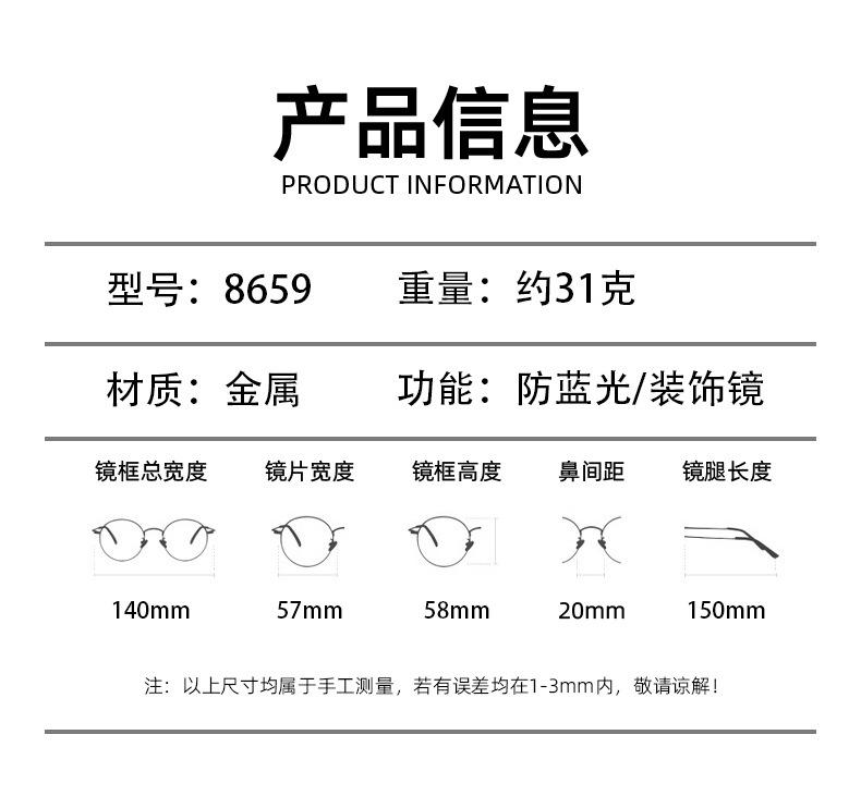 Silver frame blue film, Black frame black film, Gold frame black film, Gold frame gradient piece, Black horizo...