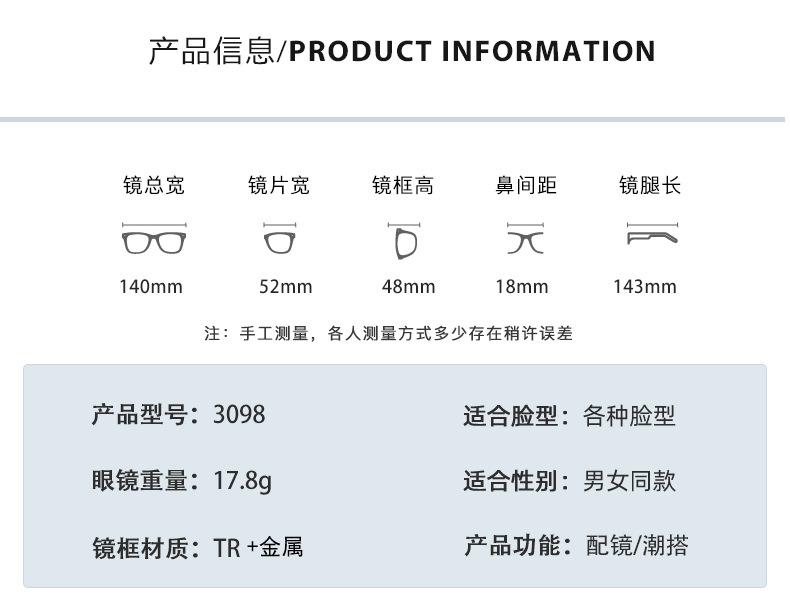 | Nuevos lentes retro TR de luz azul anti-luz para mujer, moda网红, fotografía callejera, montura de gafas sencilla, espejo plano 01247 al por mayor ¥11.00 Compre ya | Armazón de metal retro para cejas de negocios, armazón de gafas de moda, armazón de gafas Cro, para hombre, negocios K0062 ¥13.00 Compre ya | 5374TR90 Montura de gafas coreana montura negra montura para gafas de miopía ovalada recomendada por Xiaohongshu óptica lisa anti-luz azul ¥8.00 Compre ya | Gafas de carey de montura redonda superventas en Douyin, artefacto de maquillaje de los primeros ochenta, gafas anti luz azul, se pueden combinar con gafas para miopía 30333 ¥14.00 Compre ya | |