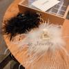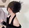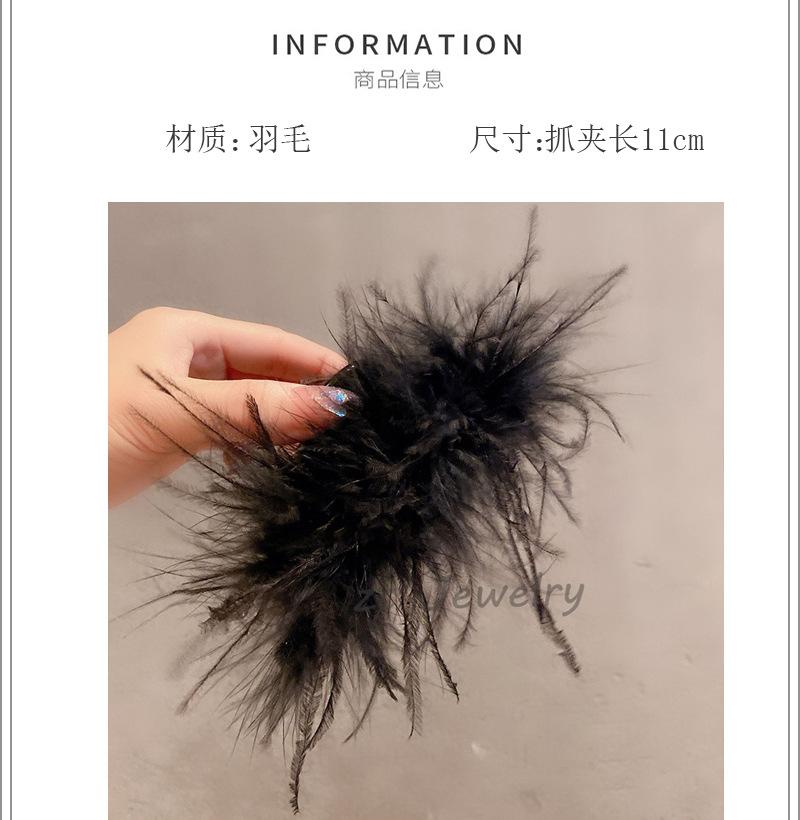 Horquilla de pelo de avestruz negro con agarre grande para la parte posterior de la cabeza, pinza de tiburón de alta sensación, pluma, estilo genial, accesorios para el cabello