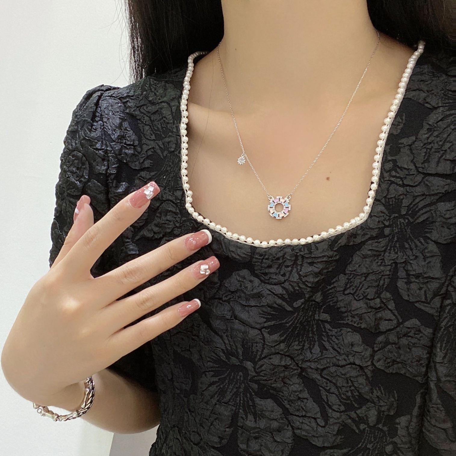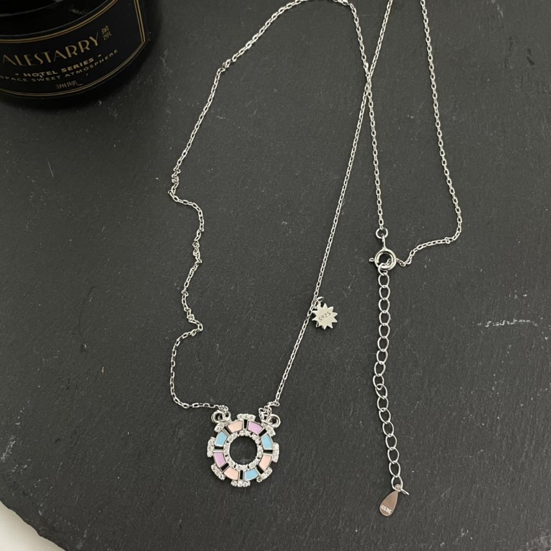 Collar de plata esterlina s925 para mujer nicho macarrón gota esmalte rueda con incrustaciones de diamantes cadena fina de verano cadena para clavícula joyería nueva moda