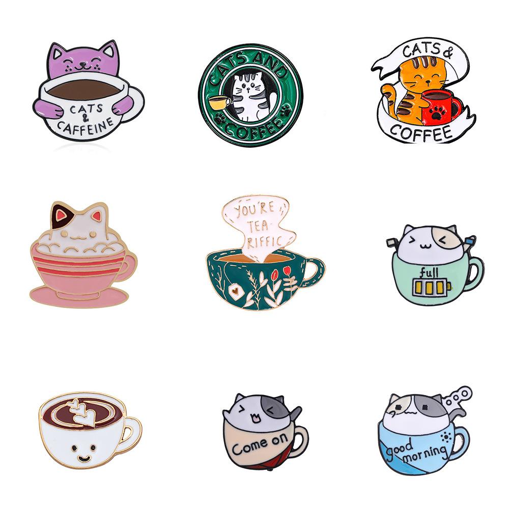2024temu - Broche inspirador con combinación de café y dibujos animados, insignia de gato adorable