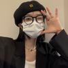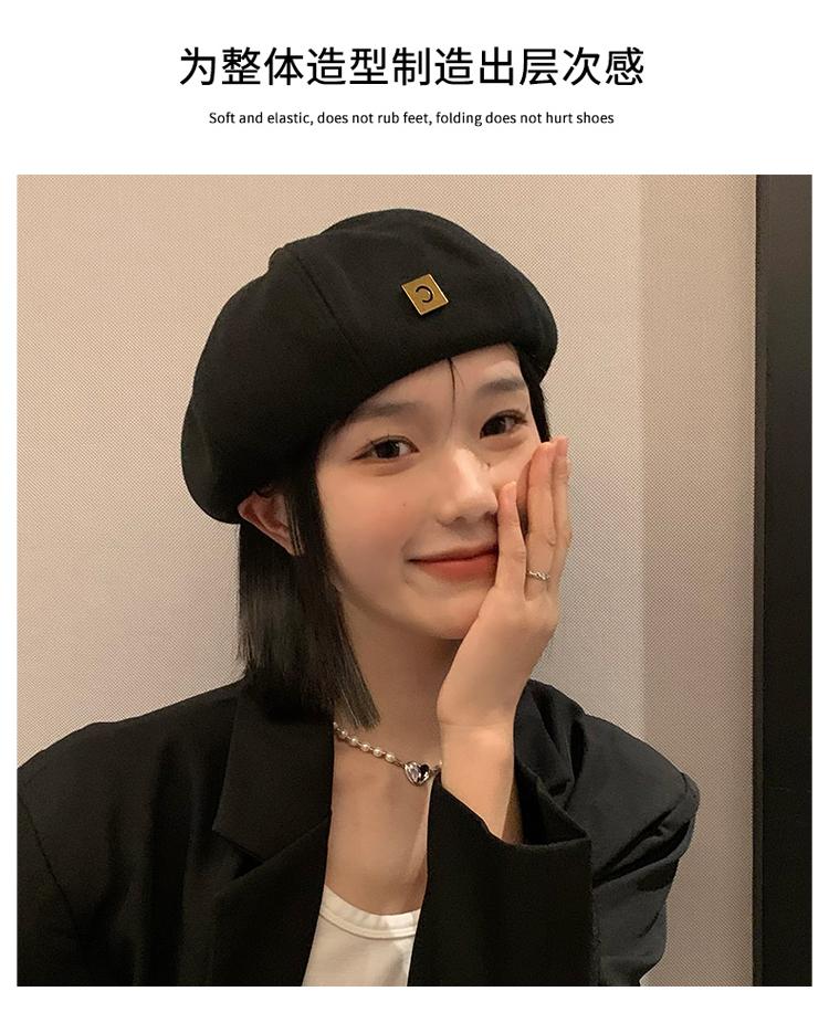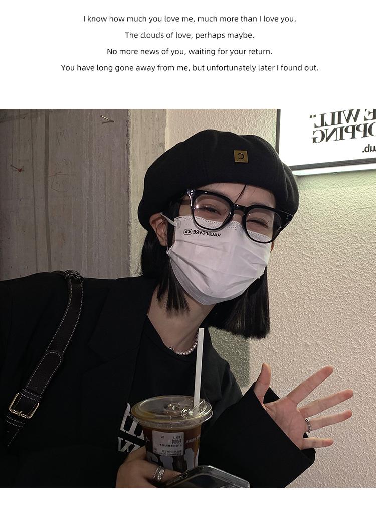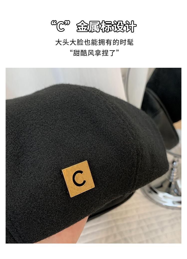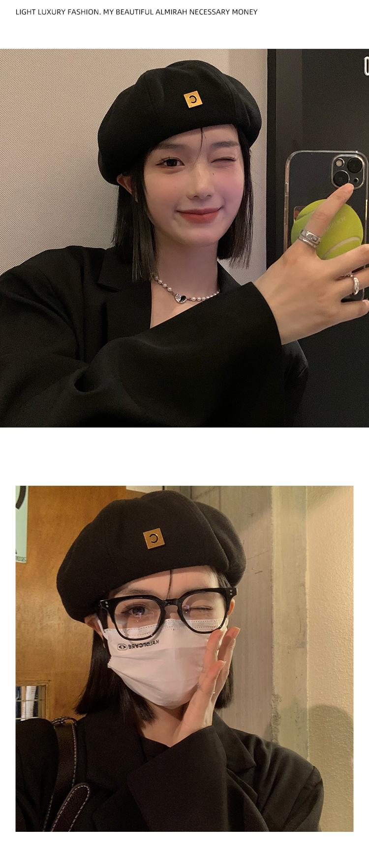 Boina de lana para mujer, otoño e invierno, letras negras, gorro de pintor Beilei combinable, estilo japonés, con cabeza grande y cara pequeña.