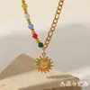 Collar con Colgante INS Francés Nuevo Acero de Titanio Oro de 18K Piedra Natural Ojo de Gato Colgante de Sol Collar de Piedras Coloridas