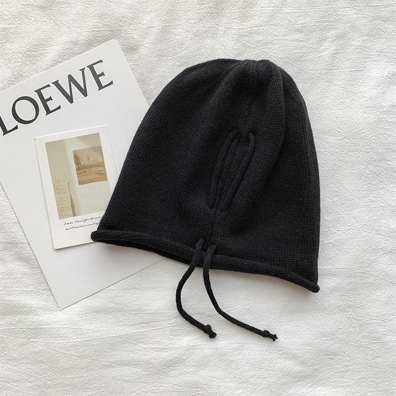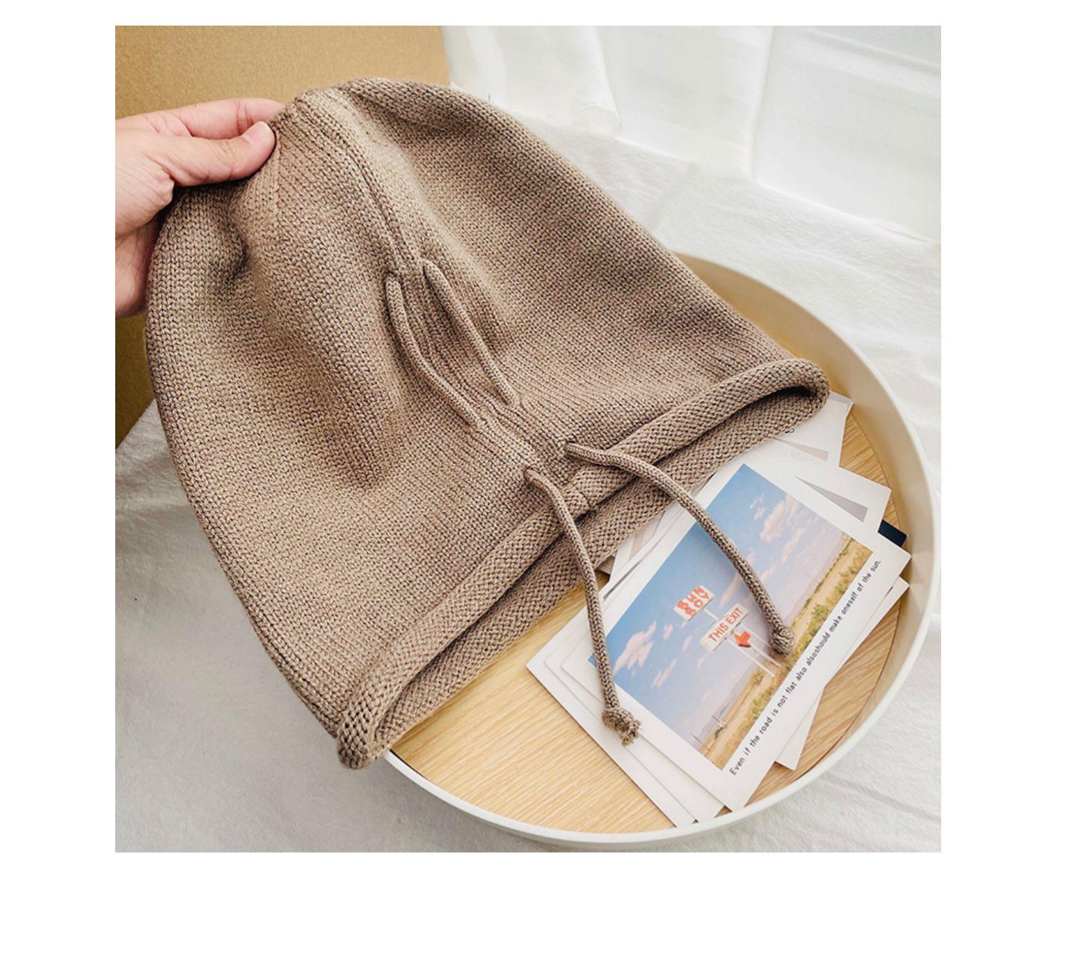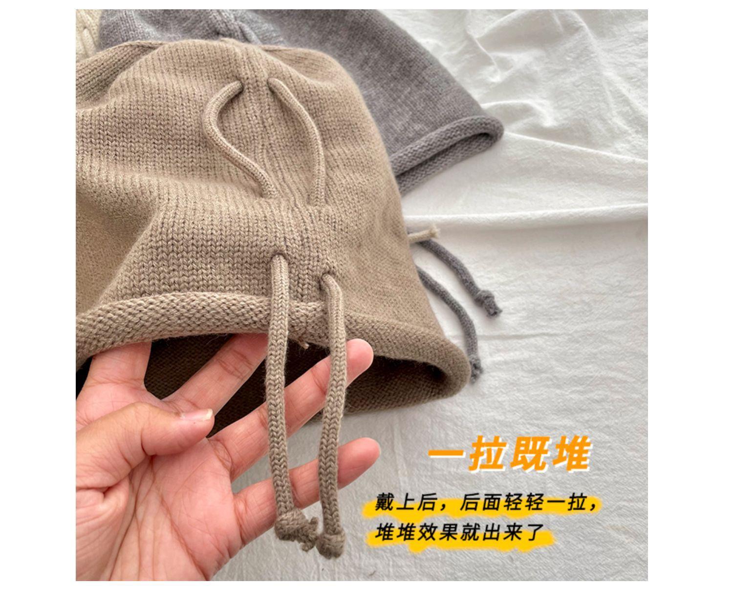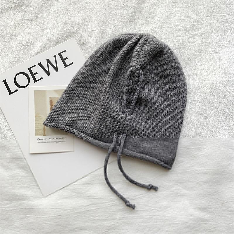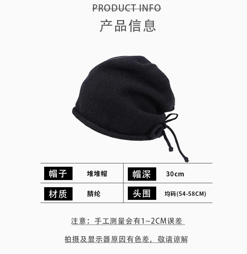 Gorro de lana de punto con cordón para otoño e invierno, para mujer, con circunferencia de cabeza grande, para todo tipo de ocasiones, con punta cerrada, gorro de confinamiento, gorro de celebridad de Internet