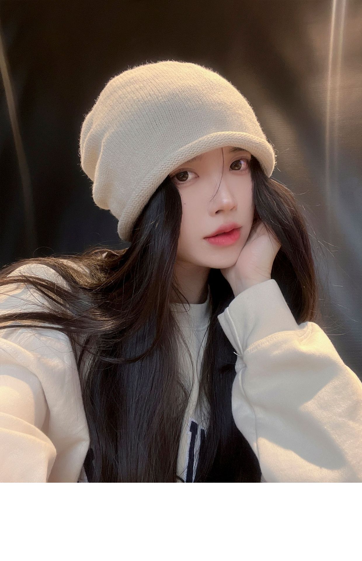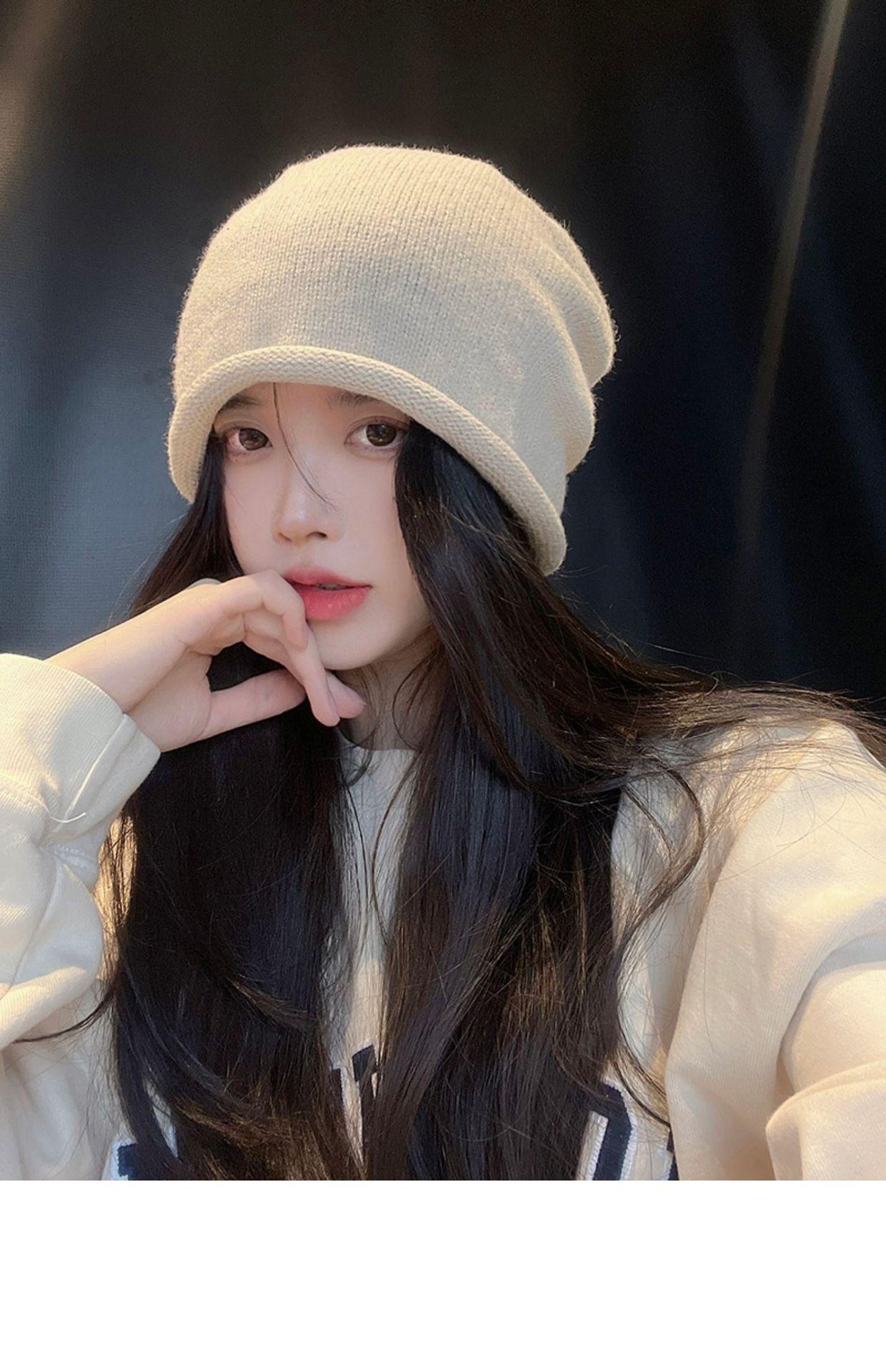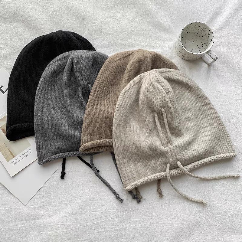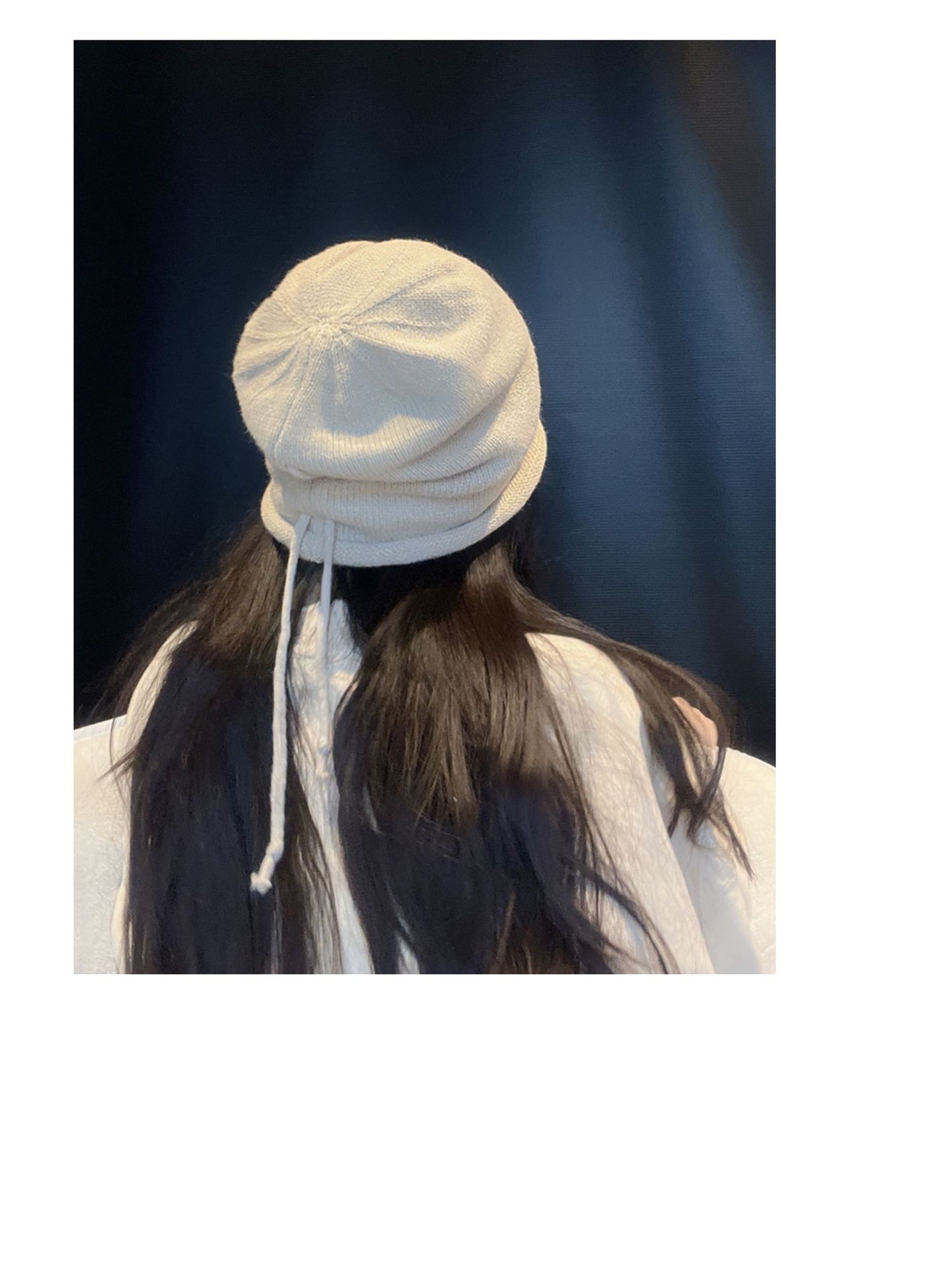 Gorro de lana de punto con cordón para otoño e invierno, para mujer, con circunferencia de cabeza grande, para todo tipo de ocasiones, con punta cerrada, gorro de confinamiento, gorro de celebridad de Internet