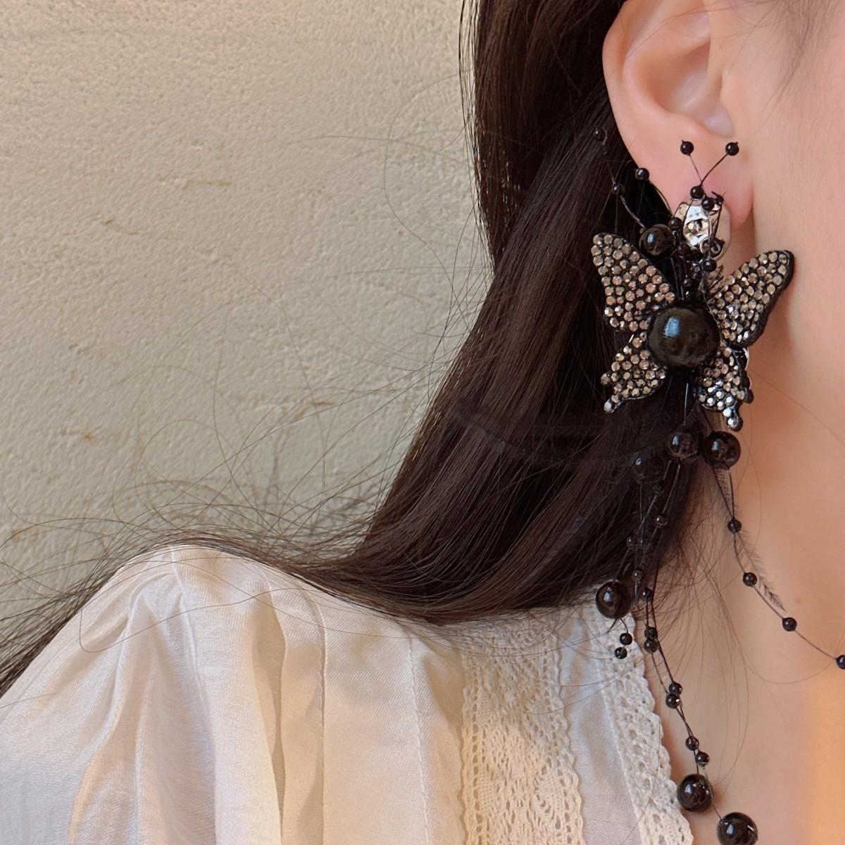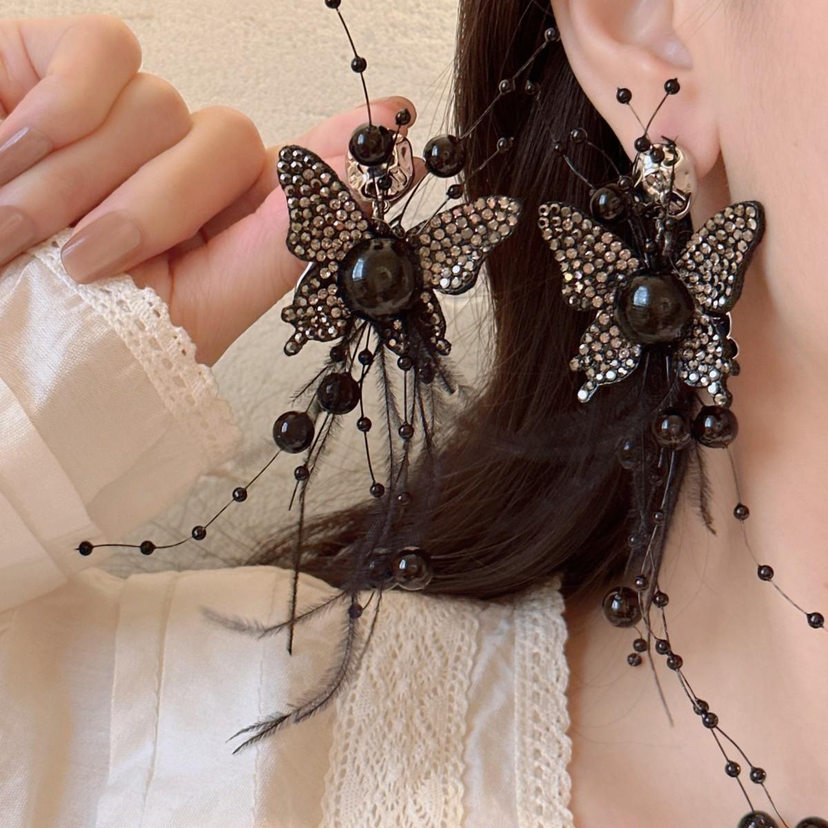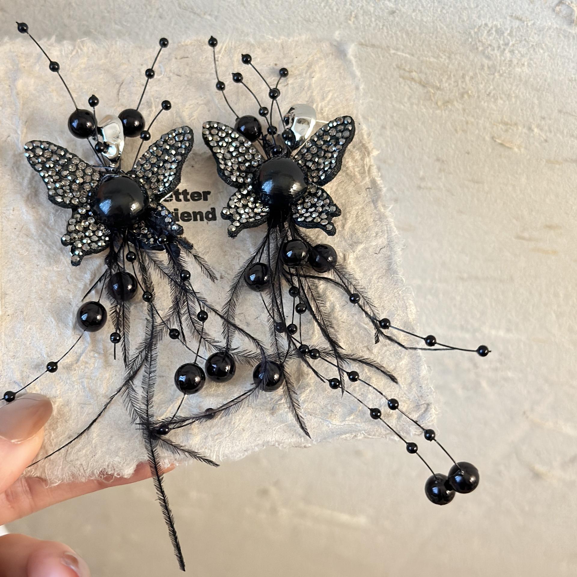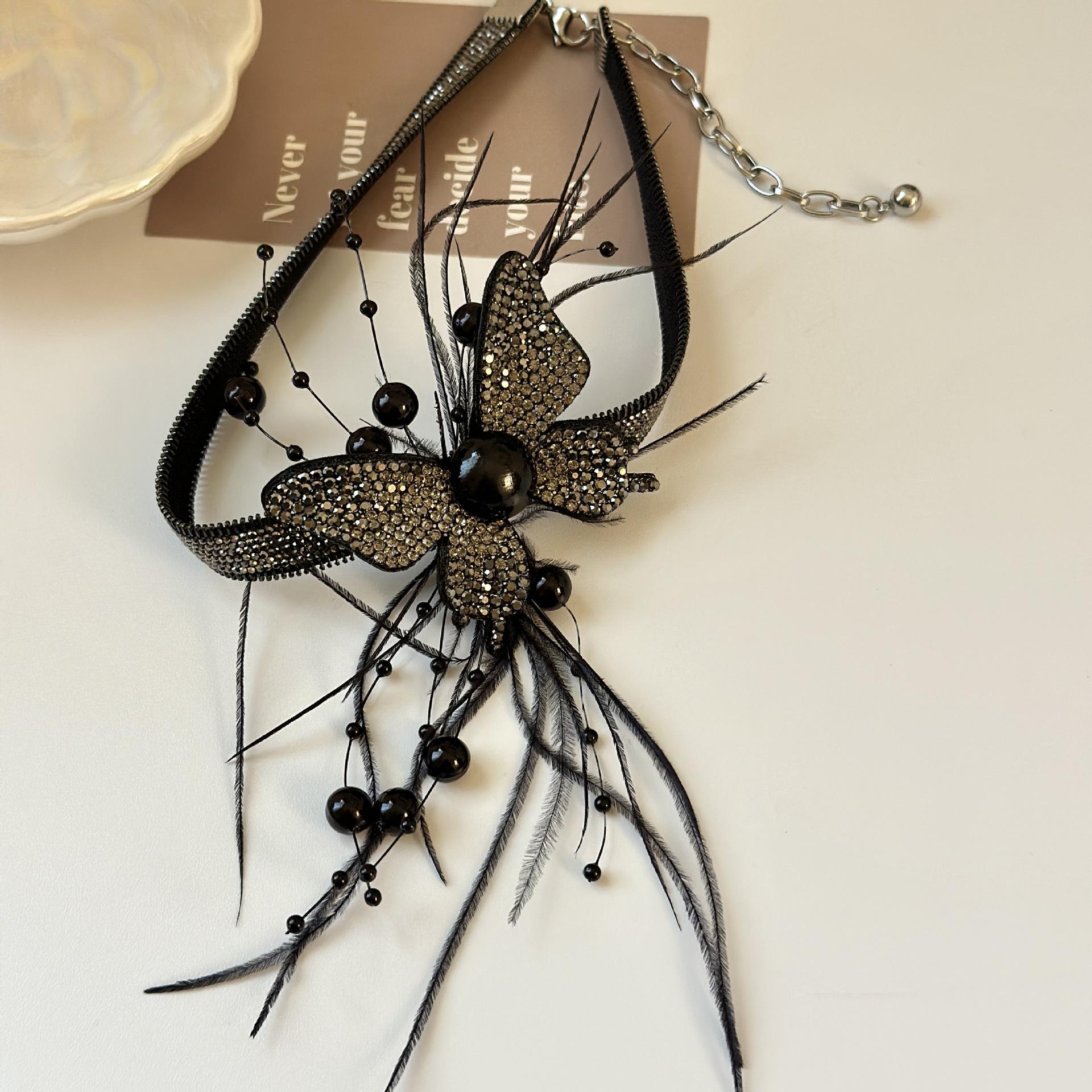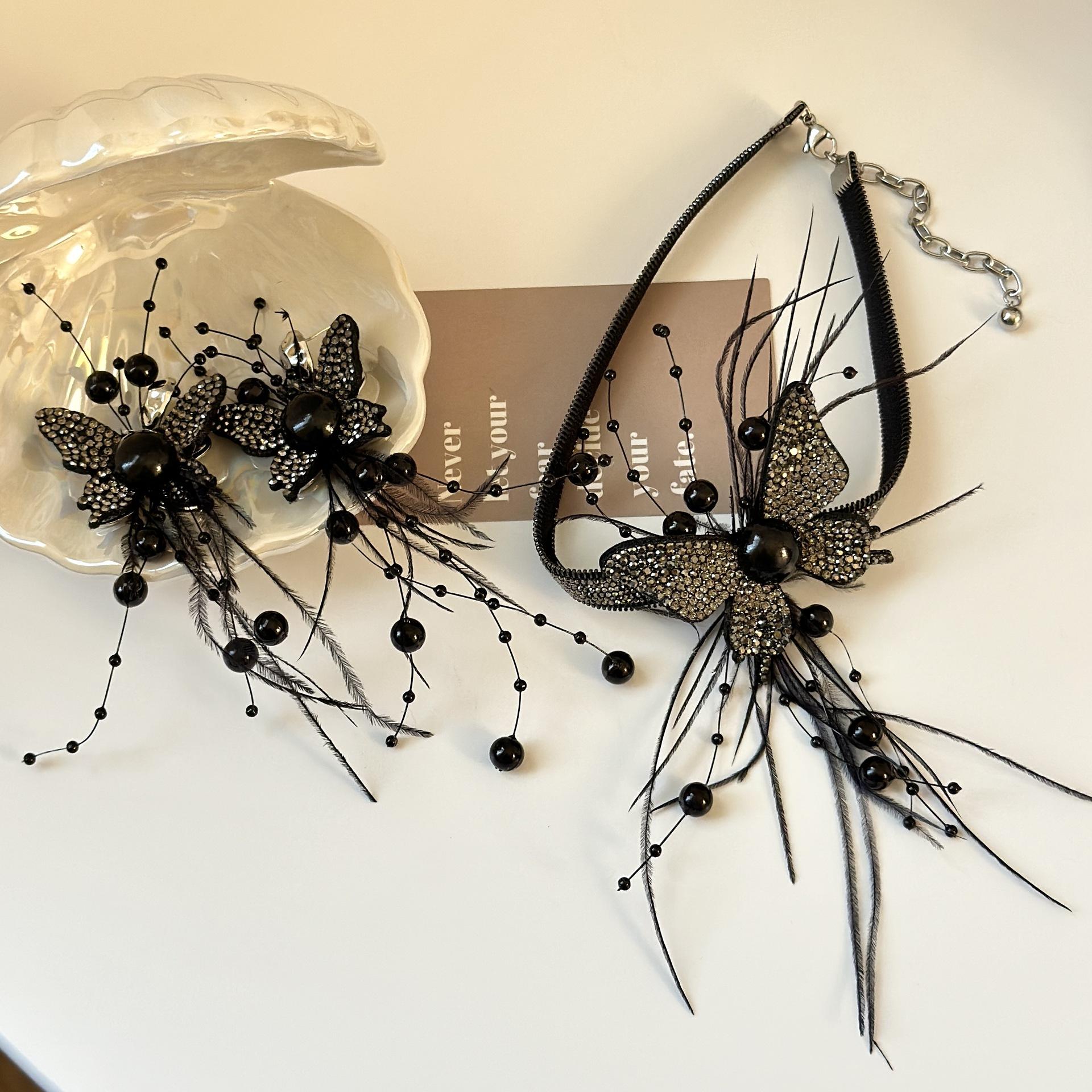 Shara nueva personalidad Black Flash diamante pluma mariposa forma collar pendientes traje francés vestido negro accesorios