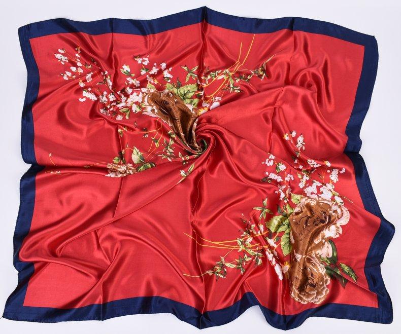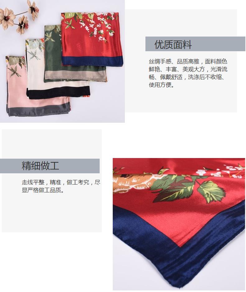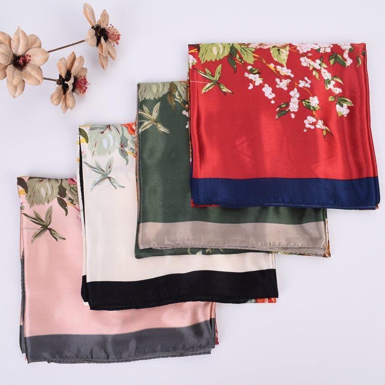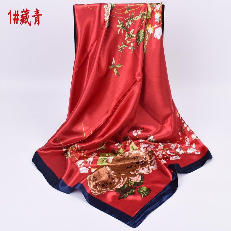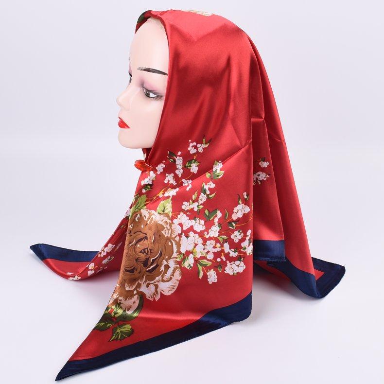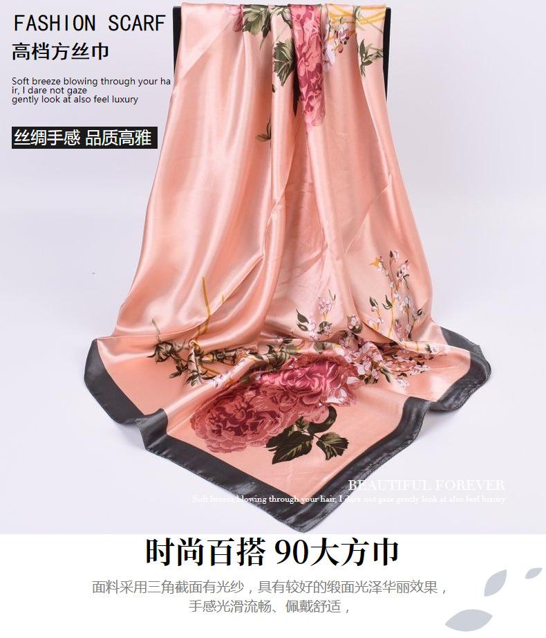 Nueva bufanda de seda de otoño e invierno, bufanda de seda de peonía de 90 cm, bufanda cuadrada grande, bufanda coreana para mujer al por mayor