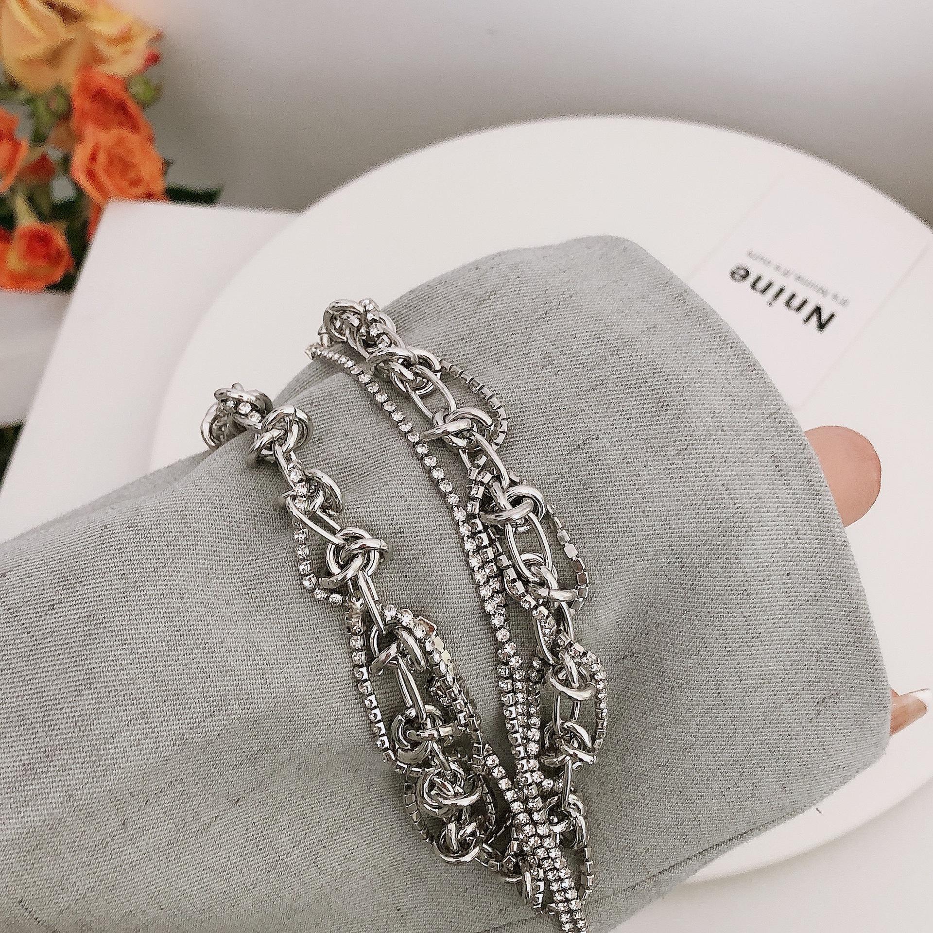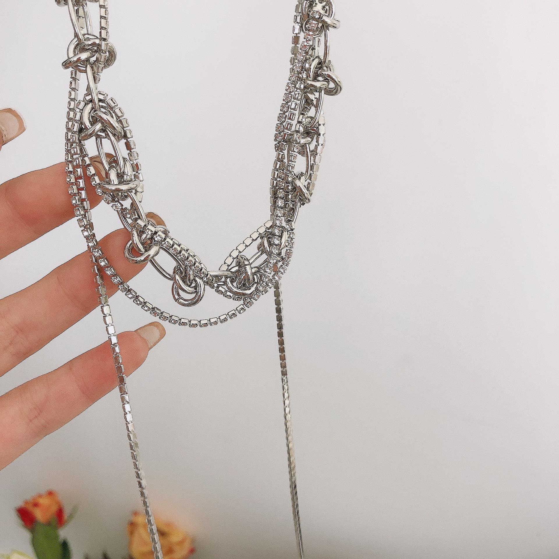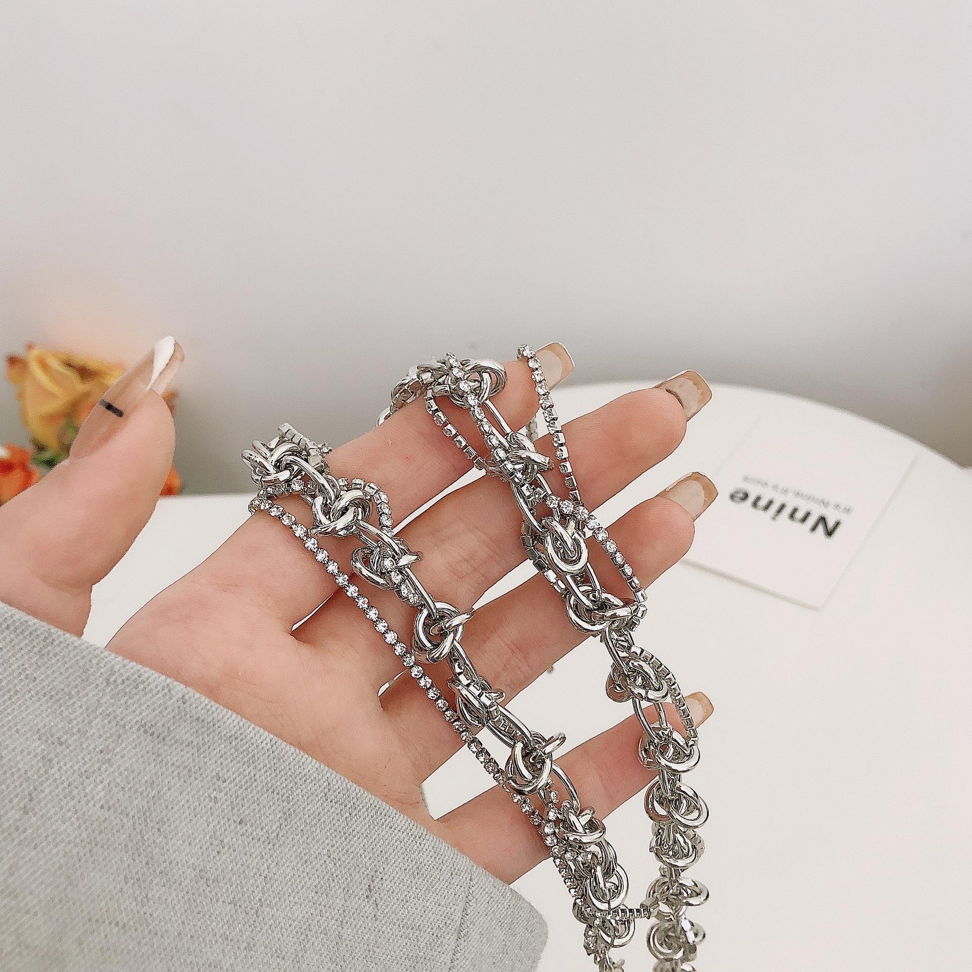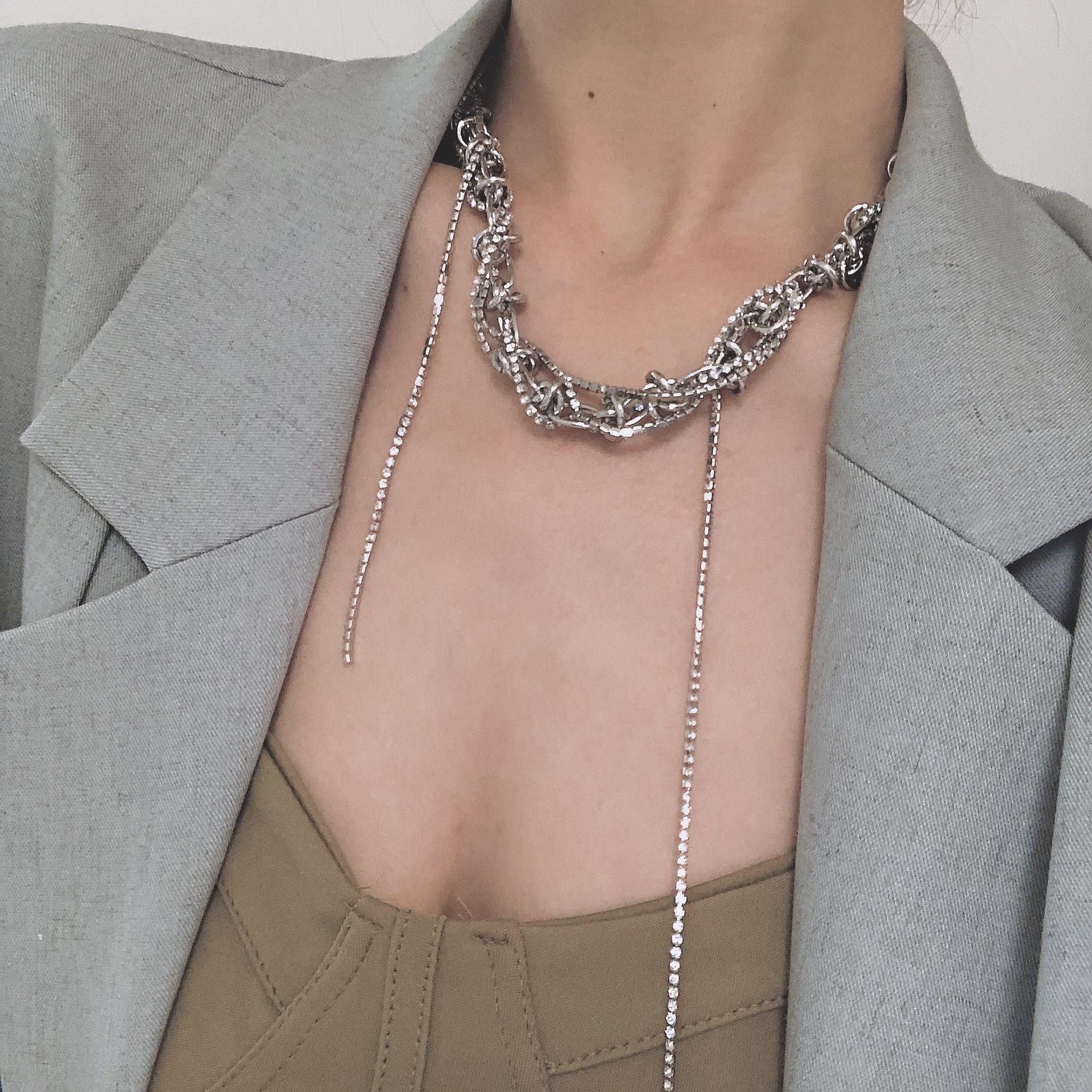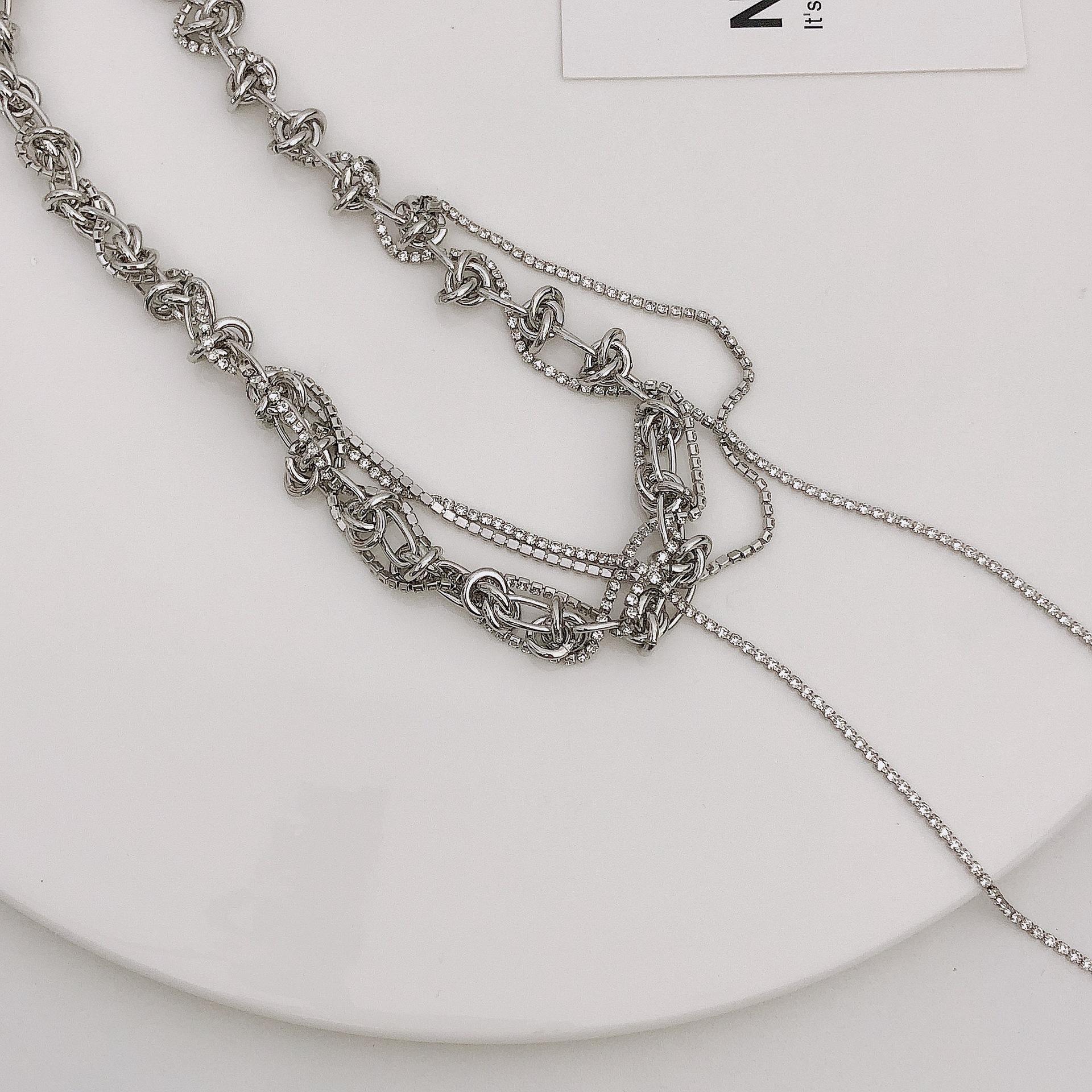 Collar de doble capa con estructura de diamante, diseño de nicho, estilo frío, cadena de clavícula para hombre y mujer.