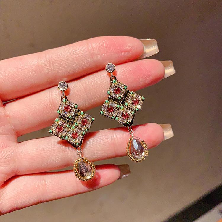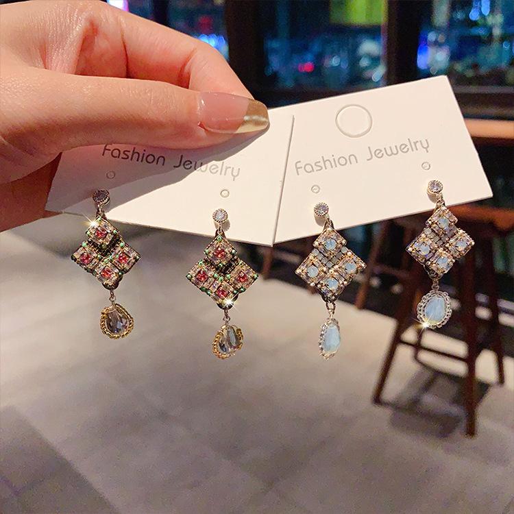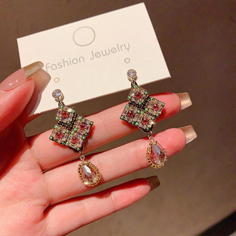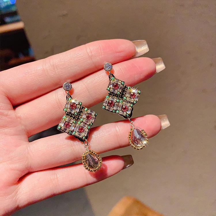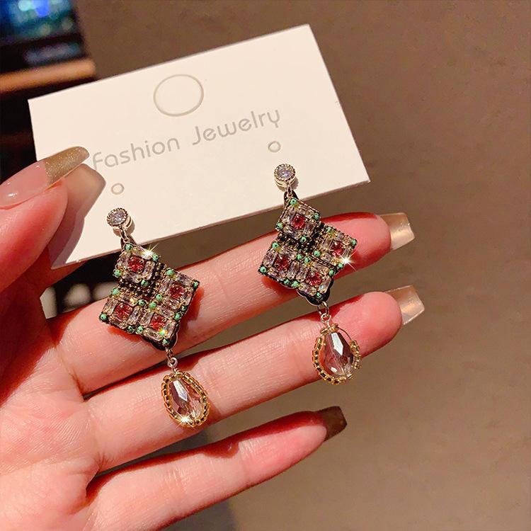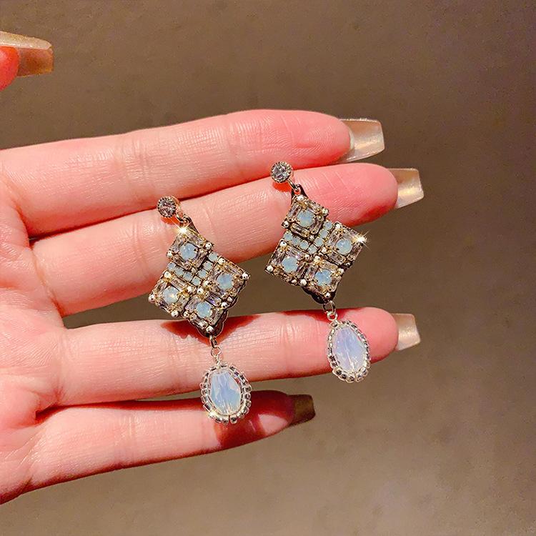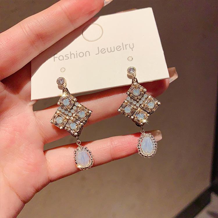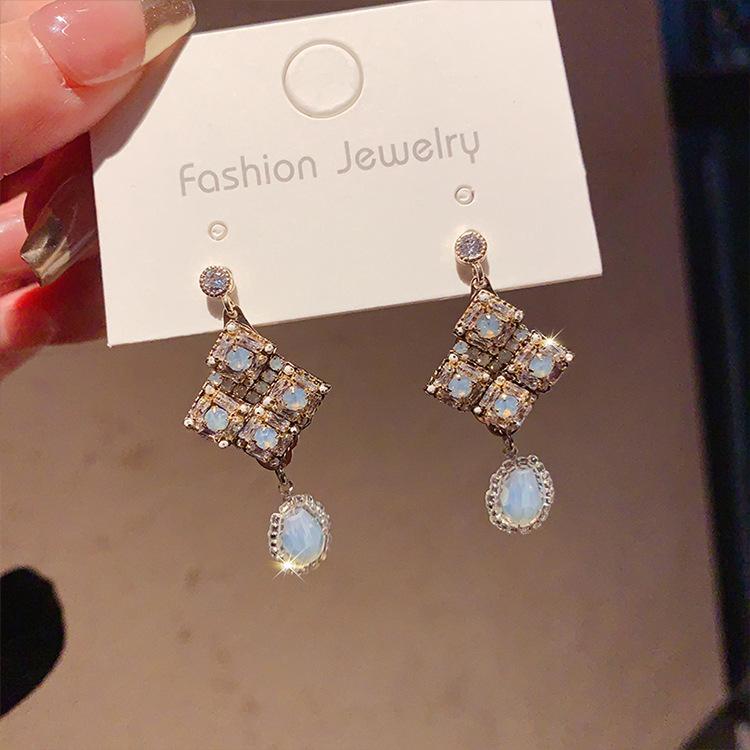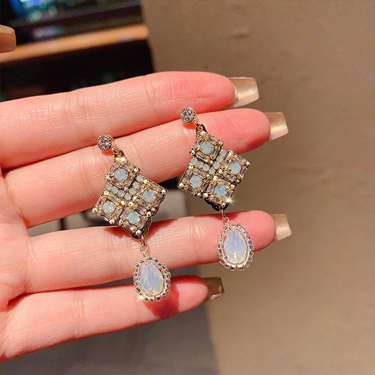 Nueva moda aretes de diamantes de circón con diamantes de imitación de diseño nicho de alto sentido, aretes simples para combinar con todo, joyería para la oreja