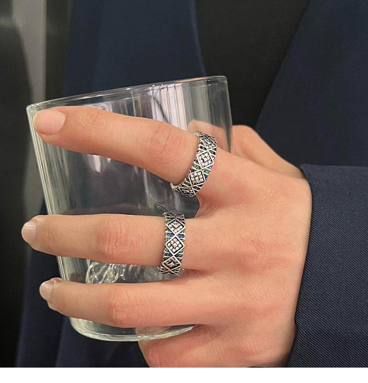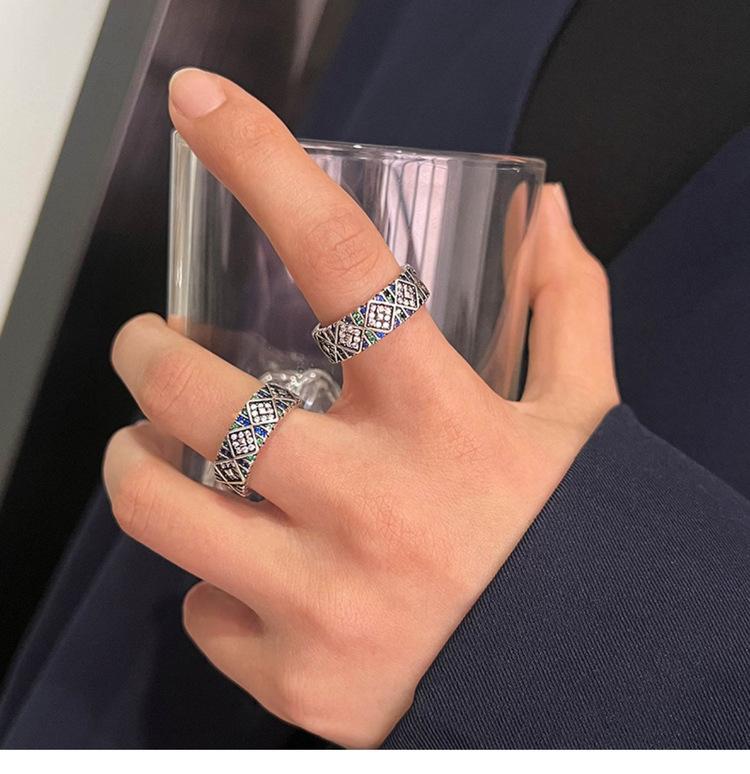 Anillo de circonita con microincrustaciones de ojo de ángel para mujer, estilo geométrico, colorido, de plata S925, abierto, con forma de comida.