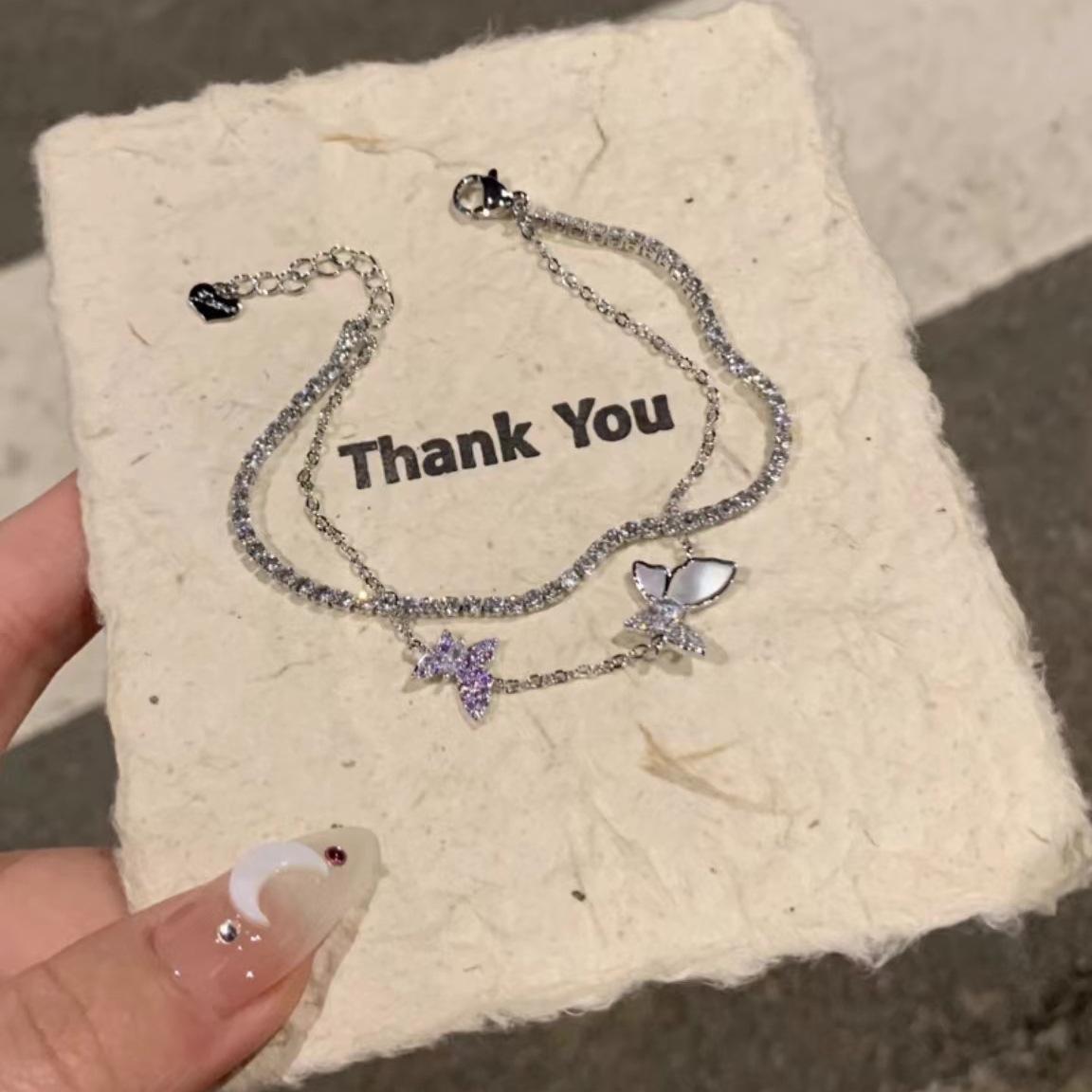 Pulsera de mariposa de doble capa de estilo nuevo de lujo ligero 2023 diseño nicho femenino pulsera de moda exquisita de alta calidad que combina con todo