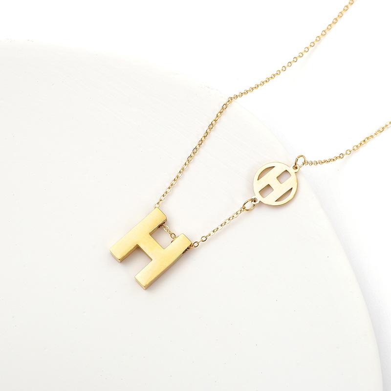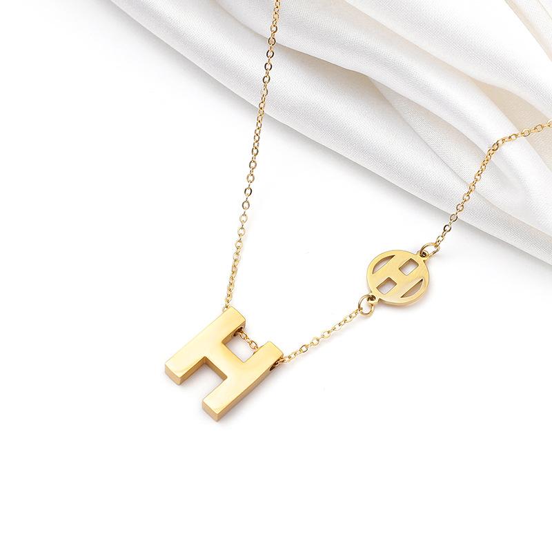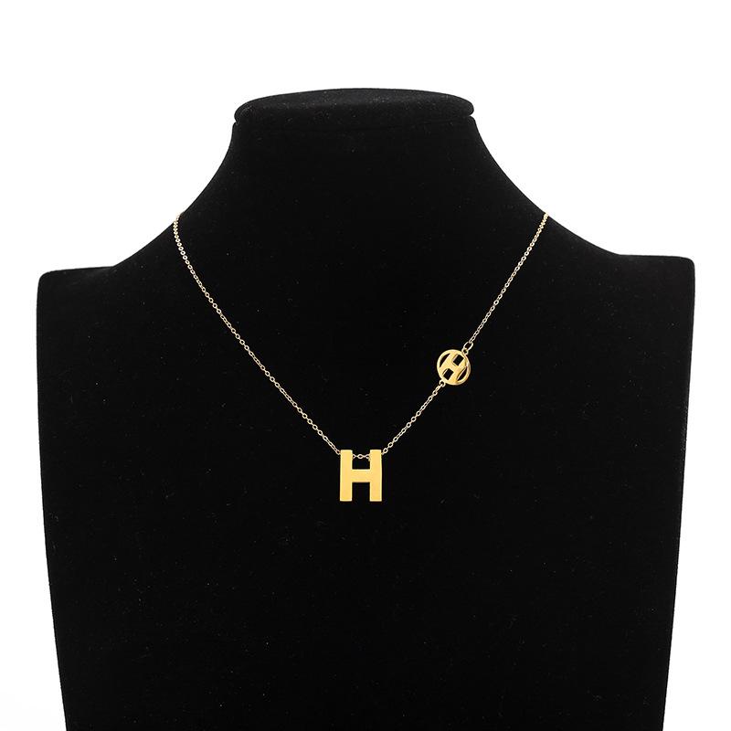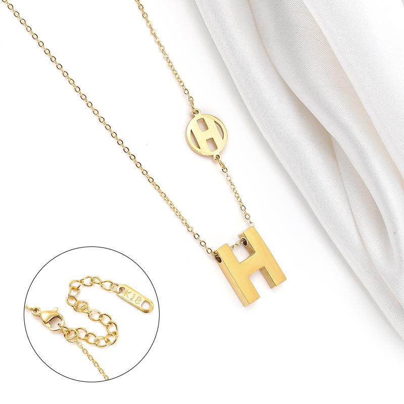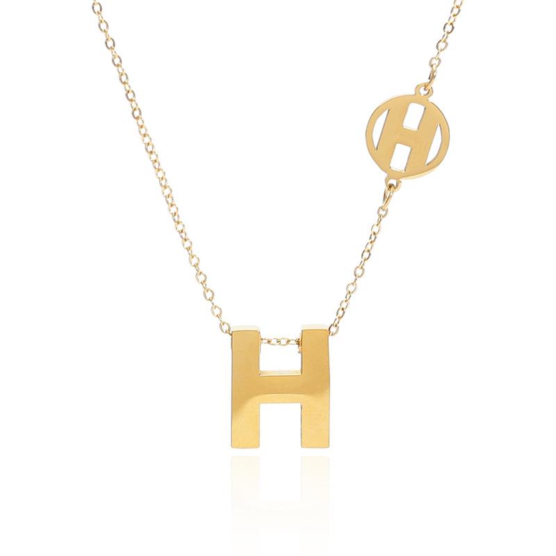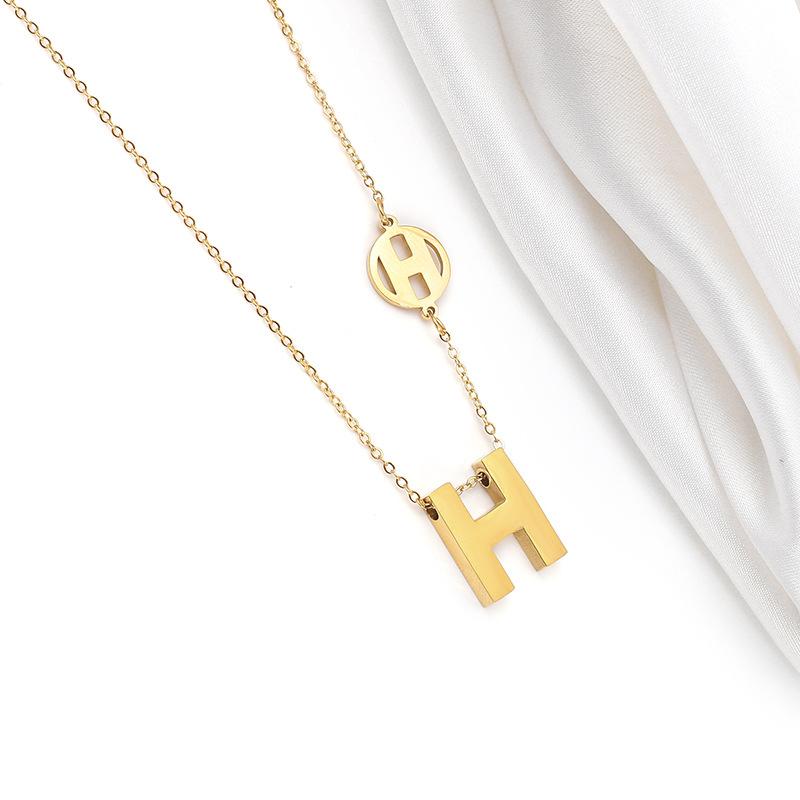 Collar de acero inoxidable al por mayor, disponible en stock, collar de acero de titanio, collar con letra H, cadena para suéter, cadena para clavícula.
