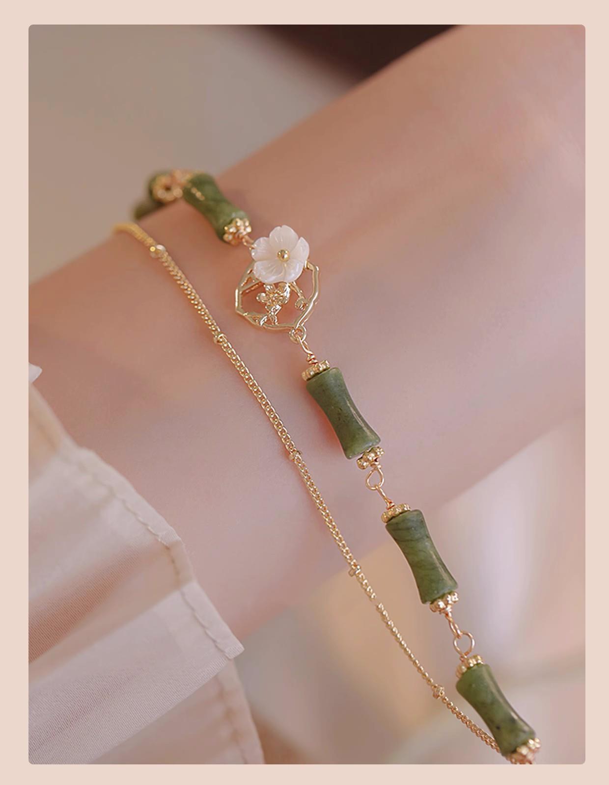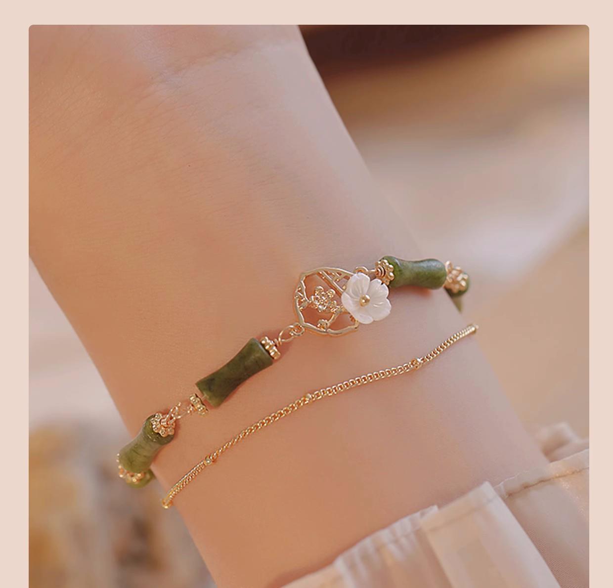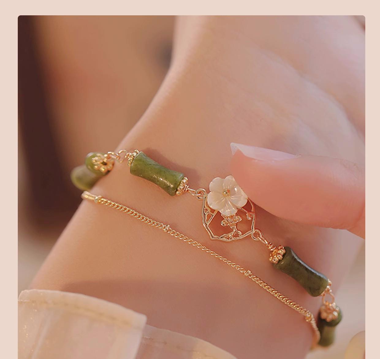 Pulsera de Bambú Sombra de Ventana 2023 Roca Natural Olivino para Mujer Uso de Doble Capa Joven Lujo Nicho Joyería de Alta Gama