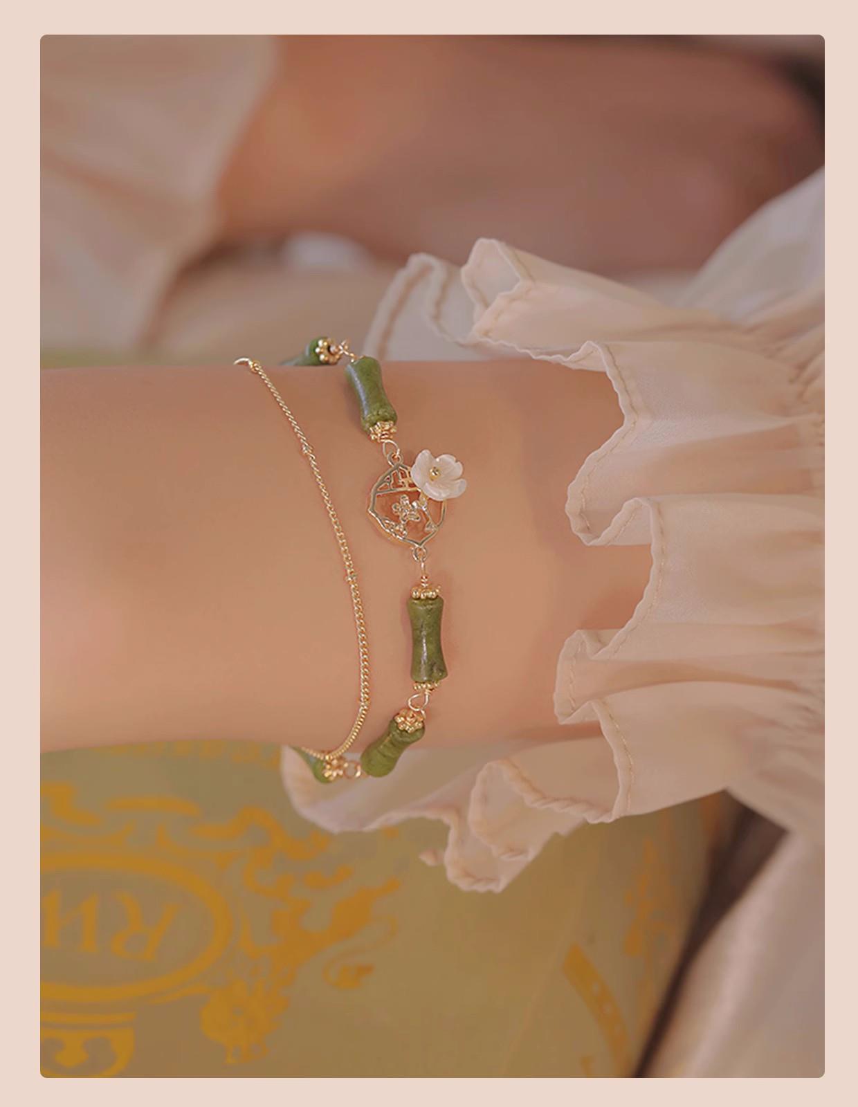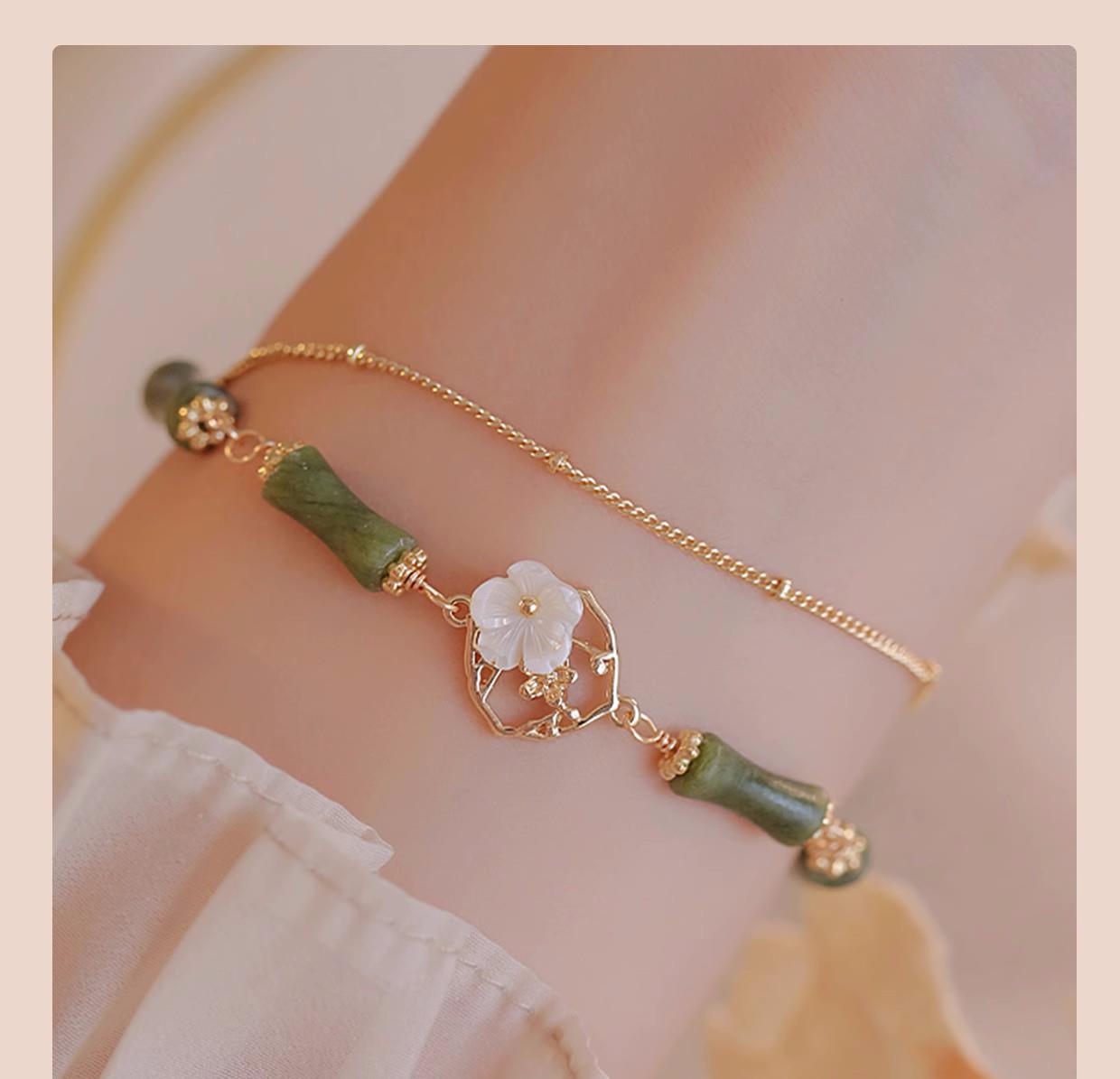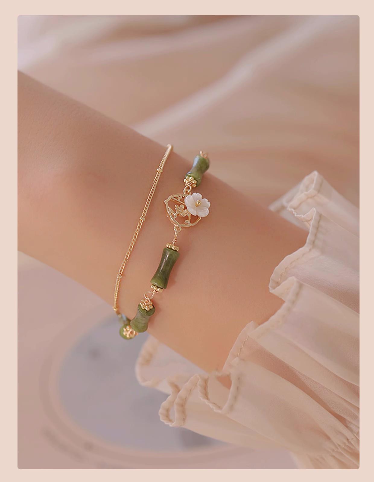 Pulsera de Bambú Sombra de Ventana 2023 Roca Natural Olivino para Mujer Uso de Doble Capa Joven Lujo Nicho Joyería de Alta Gama