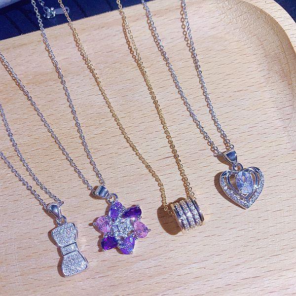 Collar dulce con microincrustaciones de circonitas súper brillantes y lleno de diamantes, chapado en oro real, cadena de clavícula de moda súper hada, colgante simple que combina con todo