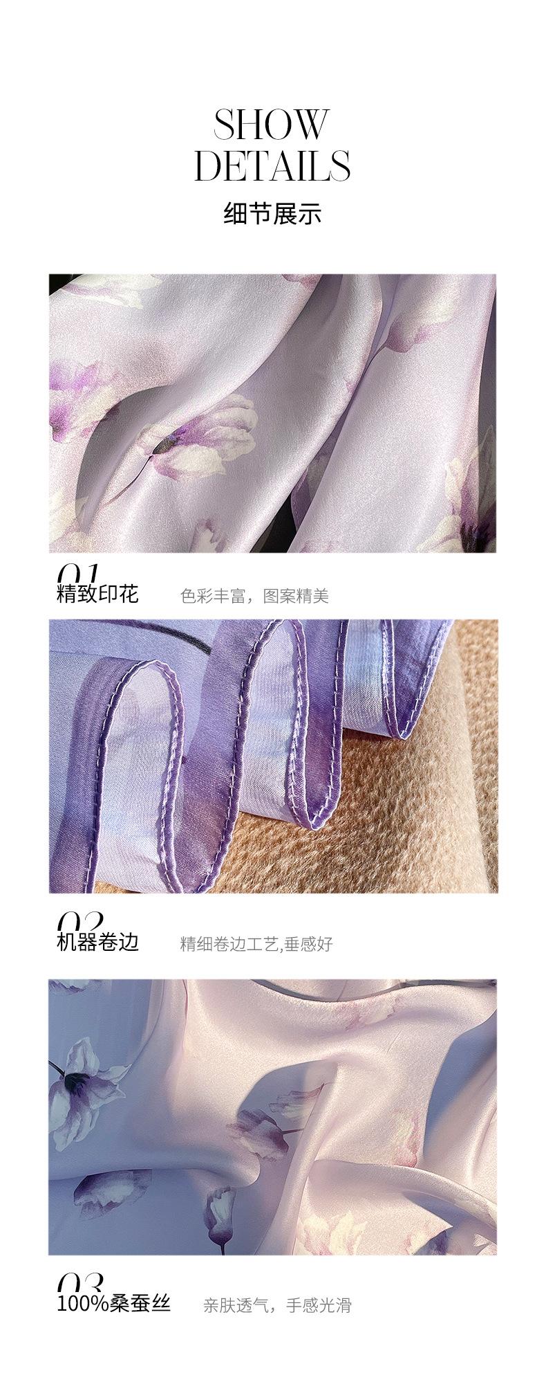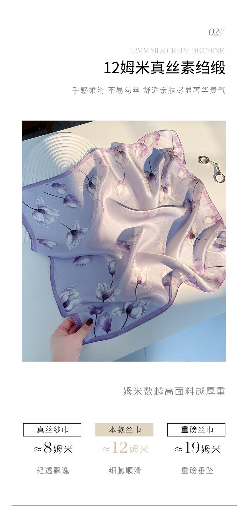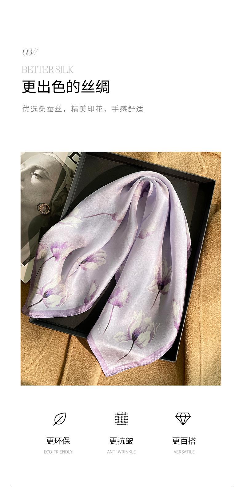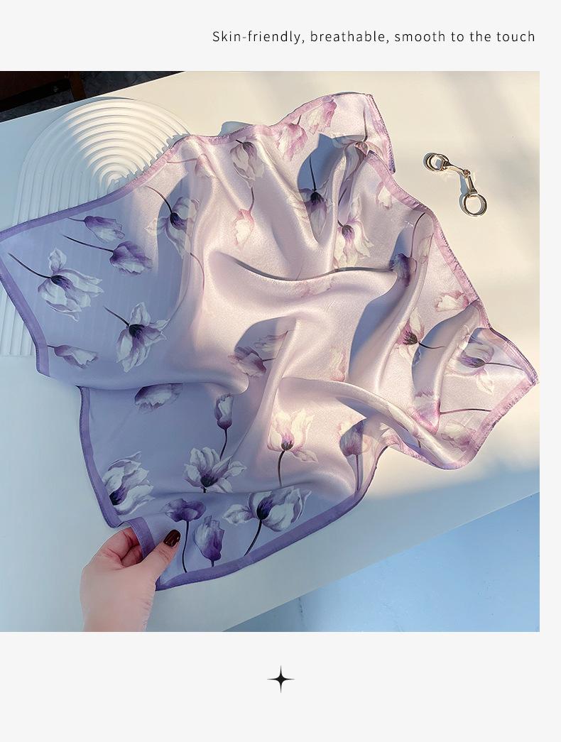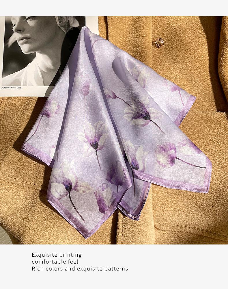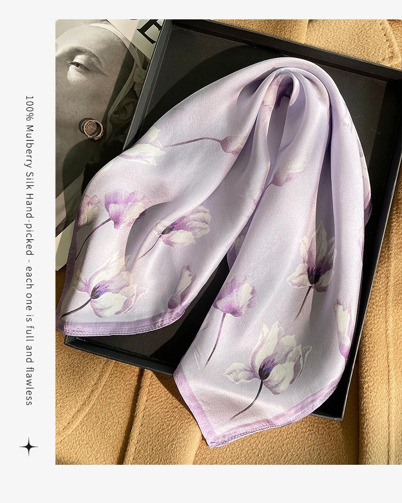 Bufanda cuadrada pequeña de seda morera elegante de color morado claro nueva de primavera, bufanda de seda de alta calidad para mujer, bufanda de seda fina