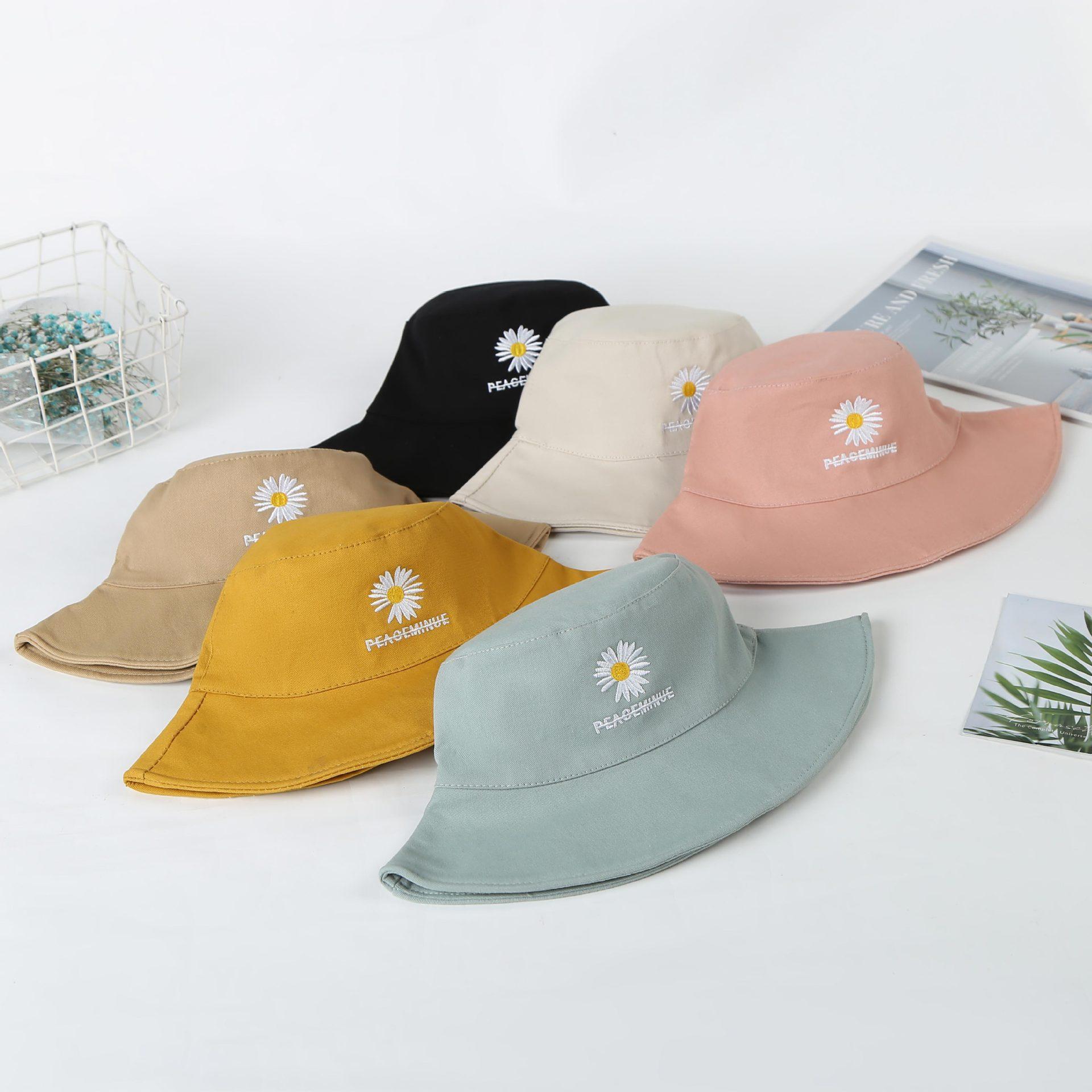 Sombrero de pescador con protección solar para exteriores, color sólido, bordado con letras de crisantemo, para verano, 2023