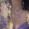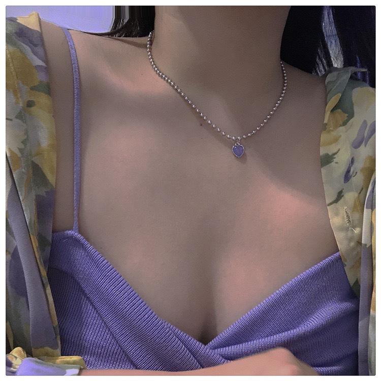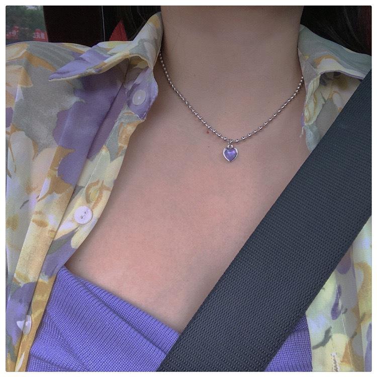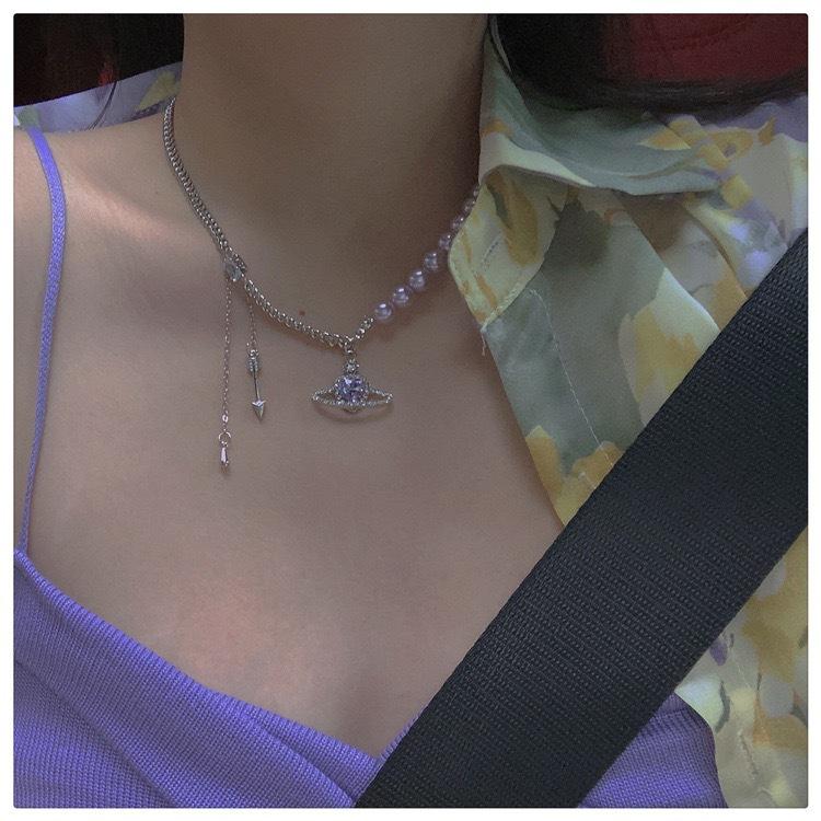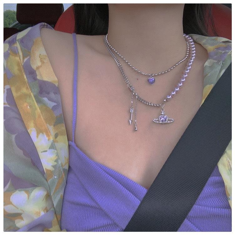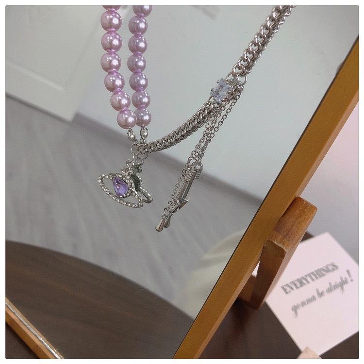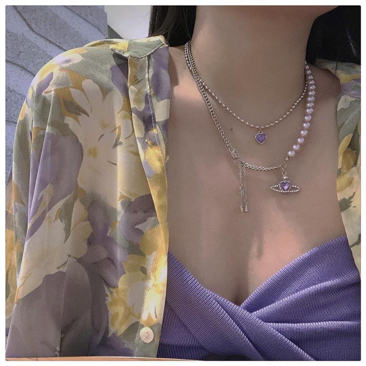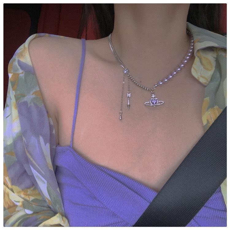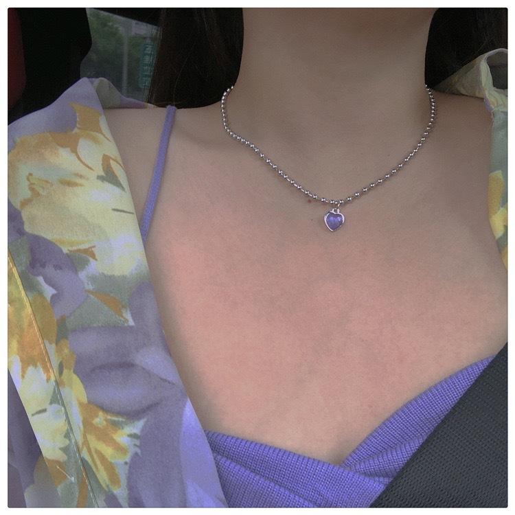 Collar con costuras de perla púrpura, diseño pequeño, romántico, con circonitas, amor y universo, con temperamento dulce y fresco de ensueño.
