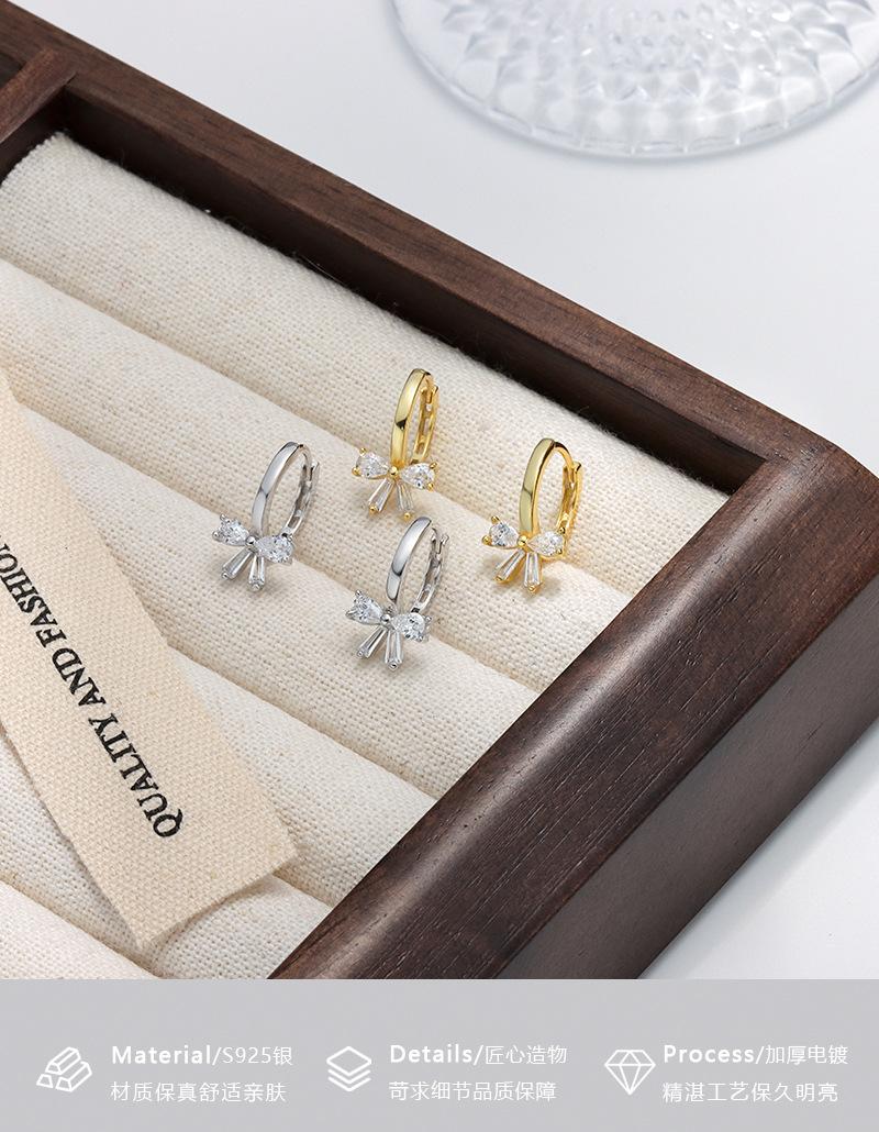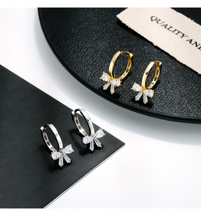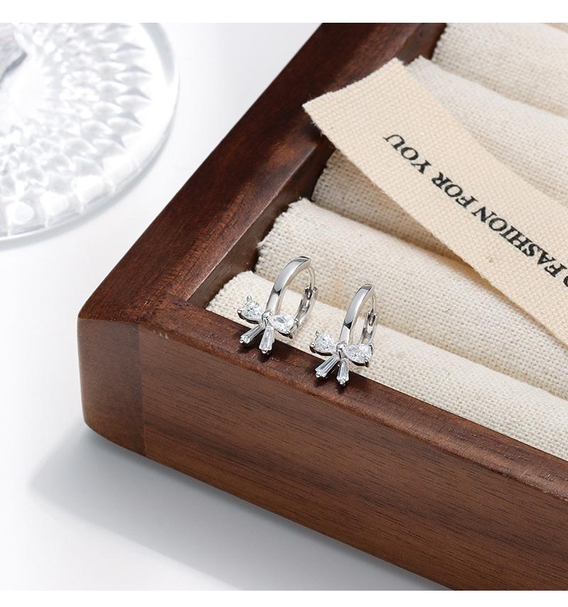 Pendientes de plata de ley S925 con lazo de circonita para mujer, sencillos, ligeros, de lujo, de alta calidad, con perforación en la oreja, con hebilla dulce