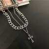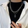 Collar retro de doble capa con cruz apilada, estilo europeo y americano, para mujer, con cadena cubana, accesorios de hip-hop, cadena de clavícula moderna para hombre.