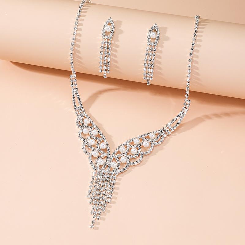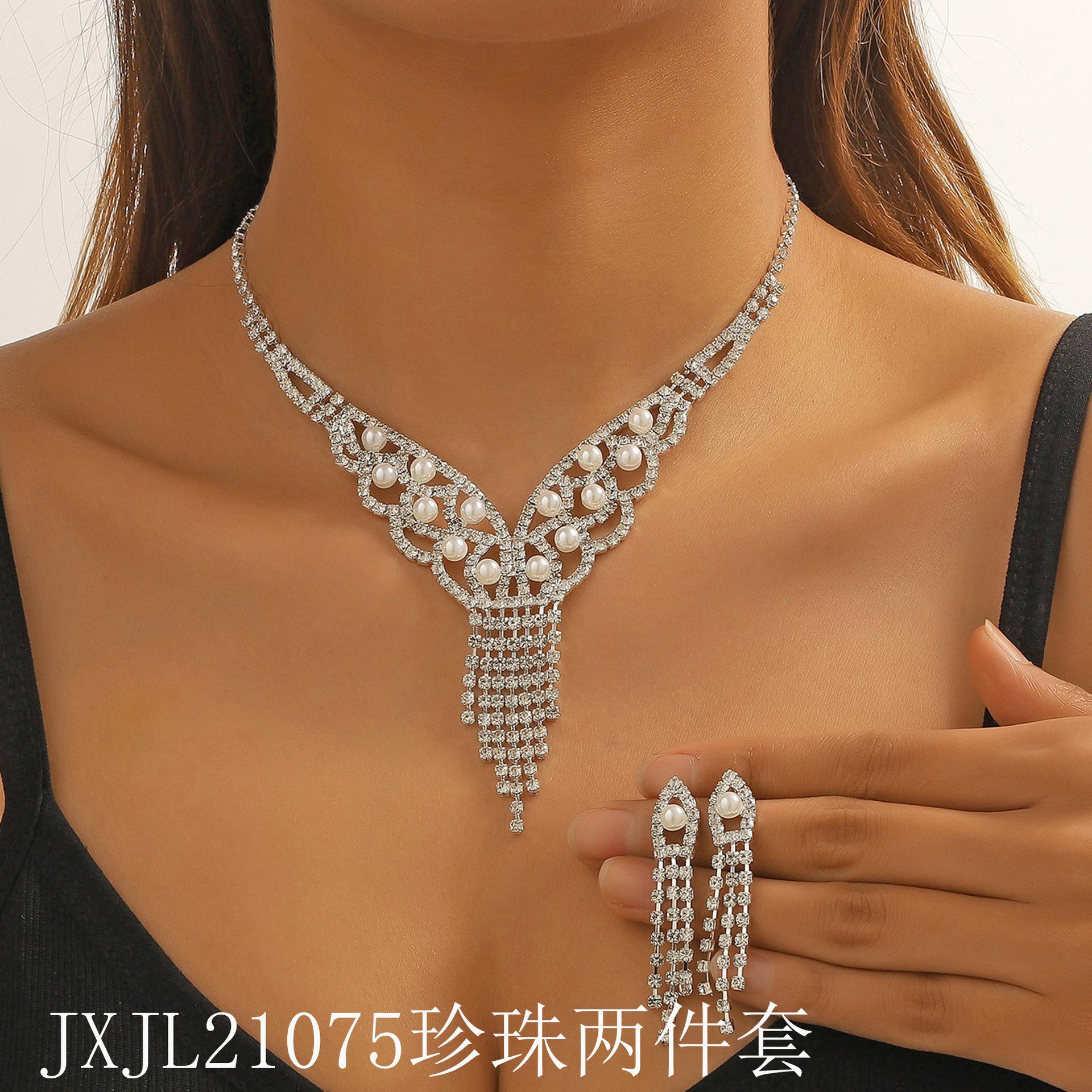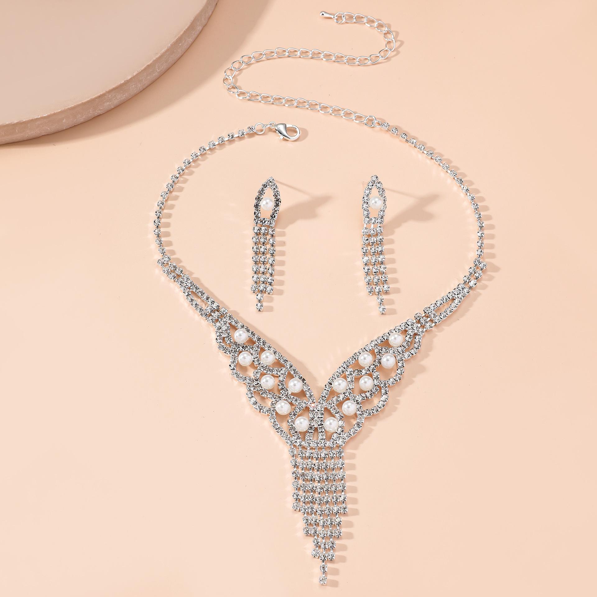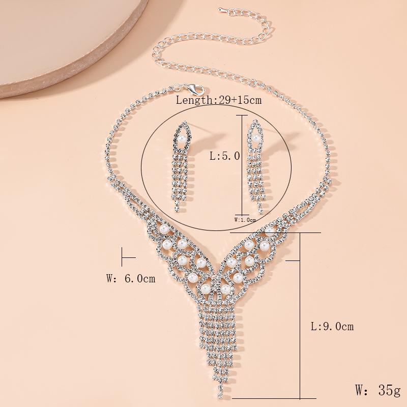 Collar de Clavícula con Borla de Perlas y Diamantes de Imitación Retro Europeo y Americano, Juego de Aretes, Lujo Accesible, Collar Versátil para Mujer