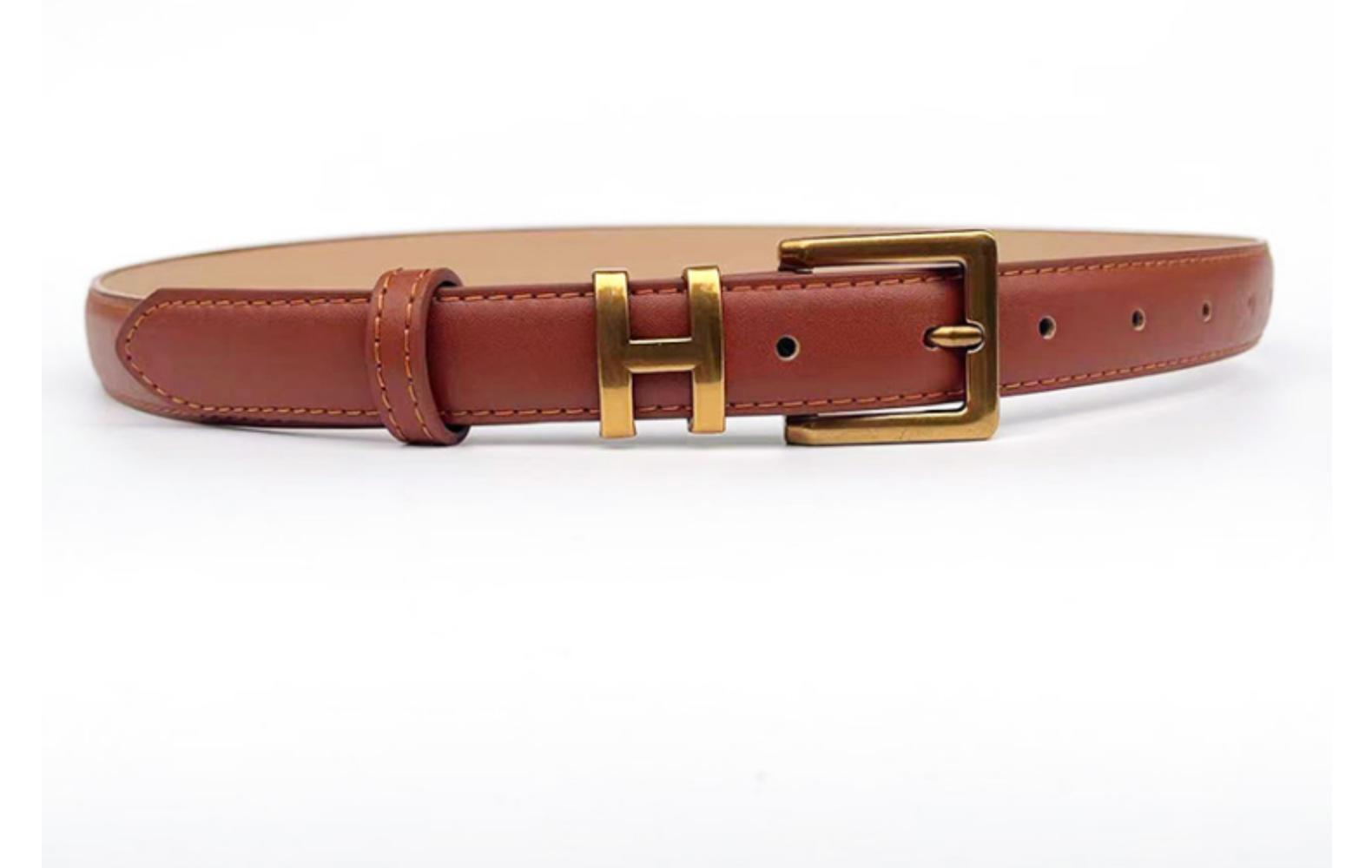 Cinturón pequeño de moda para mujer, de alta gama, combinable, decorativo y de moda, con hebilla dorada antigua de cuero sintético para mujer. Disponible.