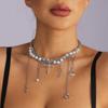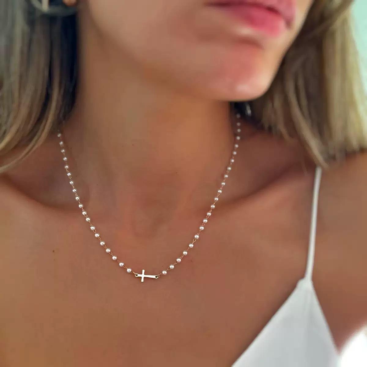 Collar de Cruz Transfronterizo Europeo y Americano Nuevo de Perlas de Imitación, Collar de Cadena con Cuentas de Moda Femenina, Joyería Versátil