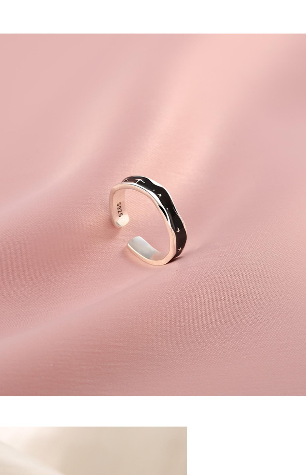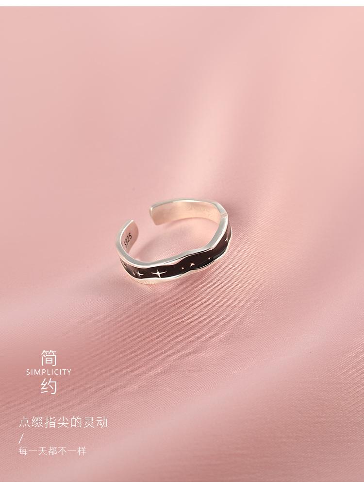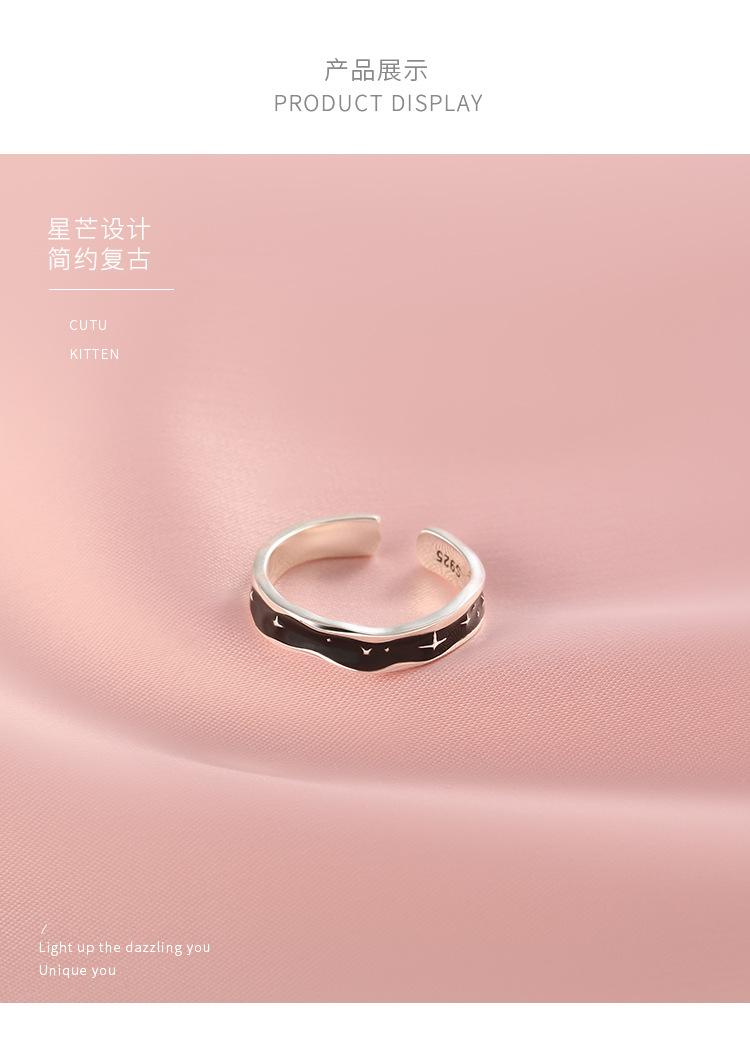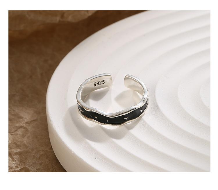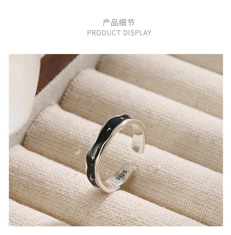 Anillo de onda simple para mujer, estilo retro, estilo hip hop, abierto, de plata S925, con forma de estrella dulce.