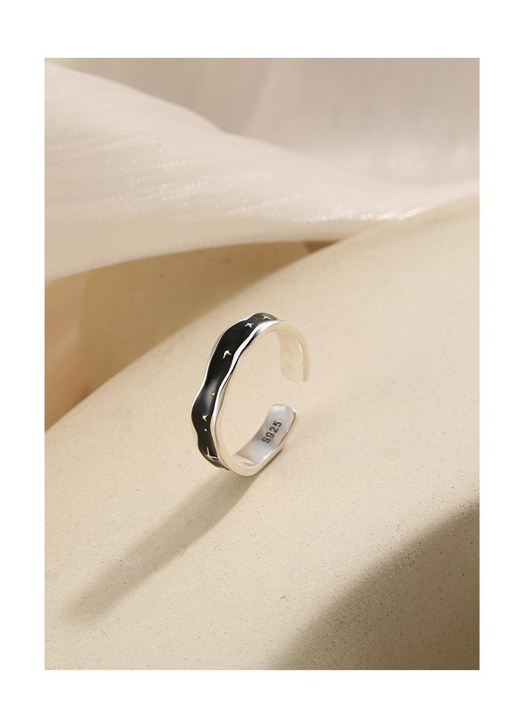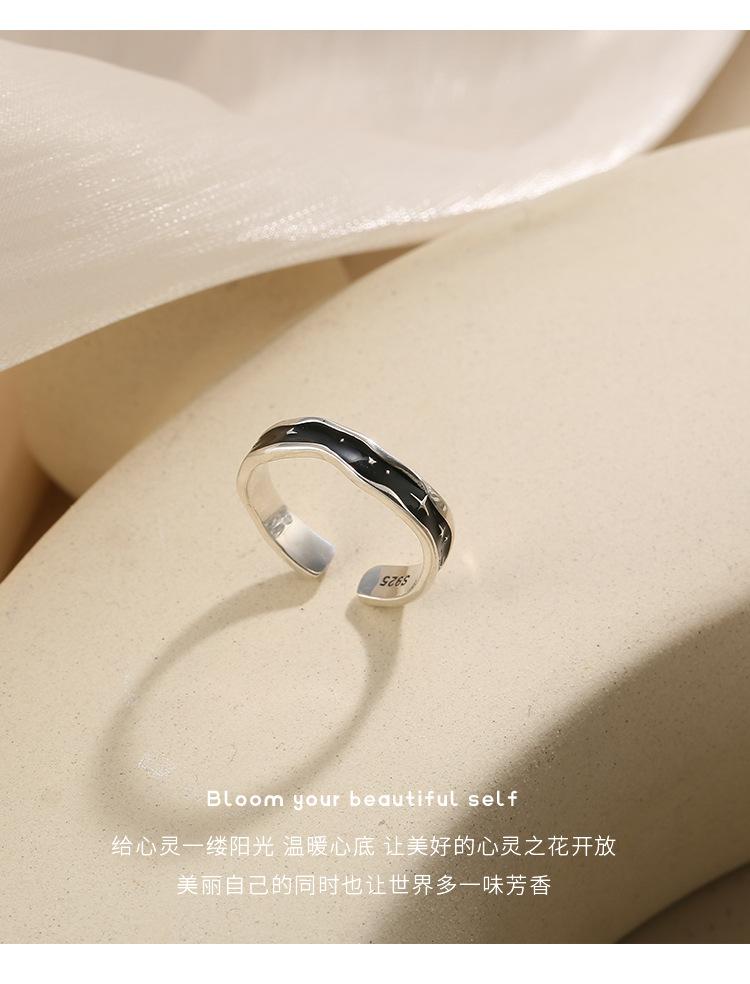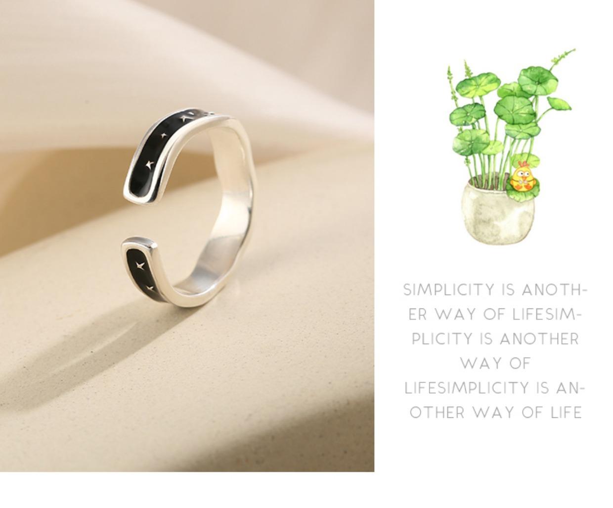 Anillo de onda simple para mujer, estilo retro, estilo hip hop, abierto, de plata S925, con forma de estrella dulce.