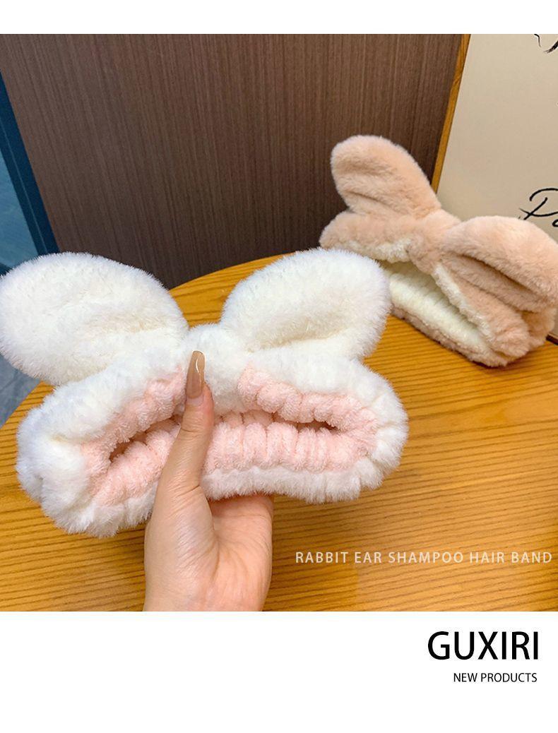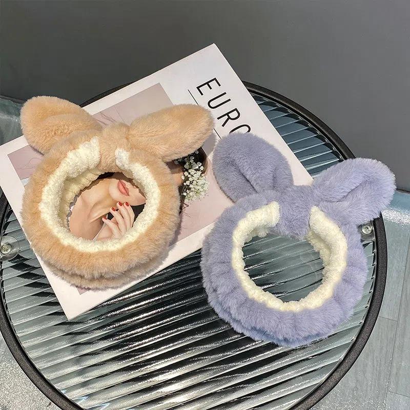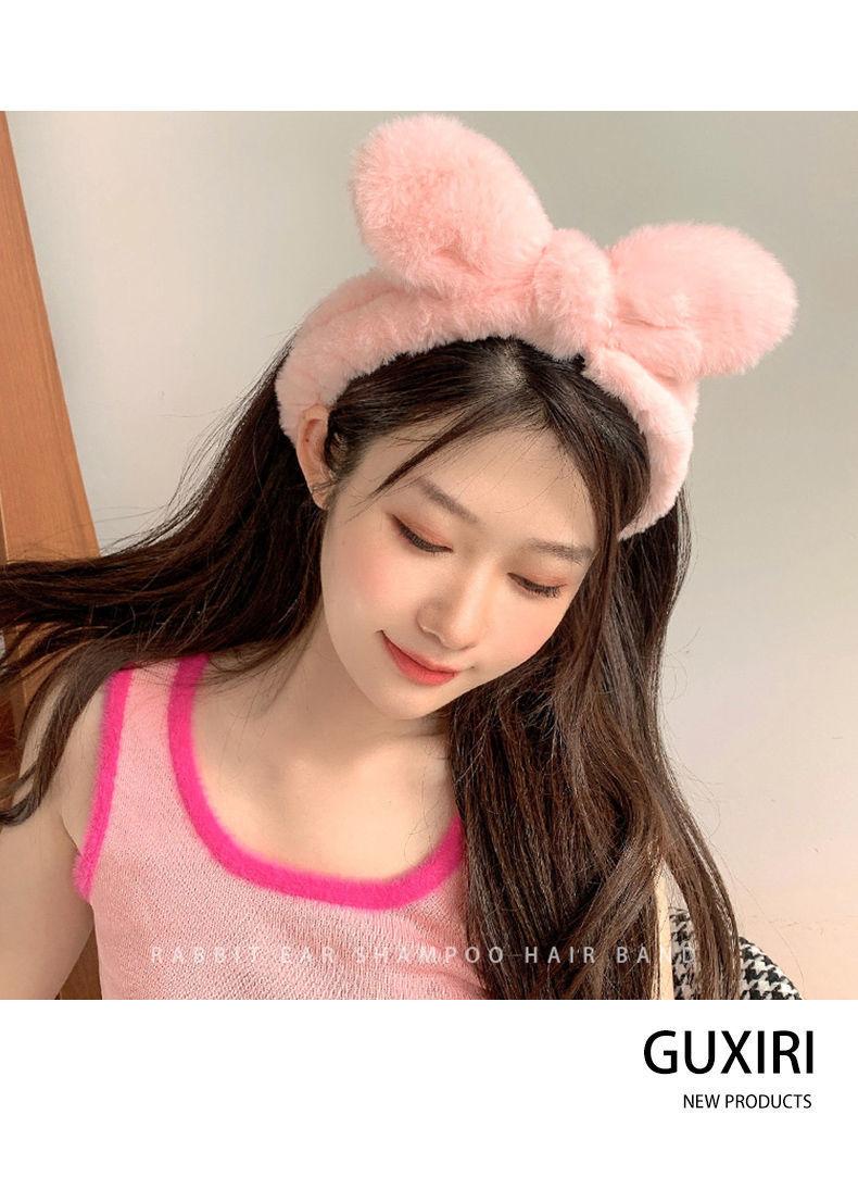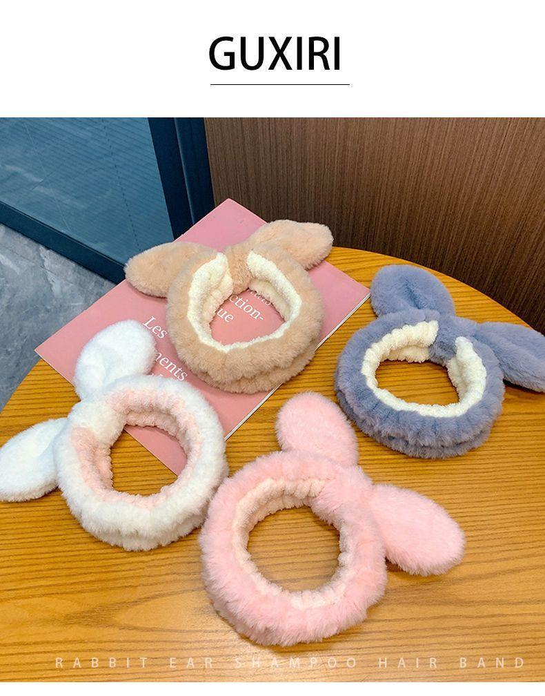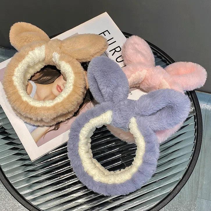 Banda para el cabello de felpa con orejas de conejo para mujer, bonita banda para el cabello, diadema coreana sencilla para mascarilla facial