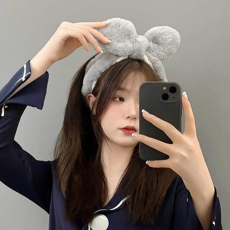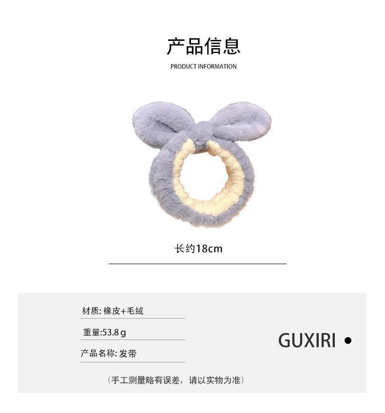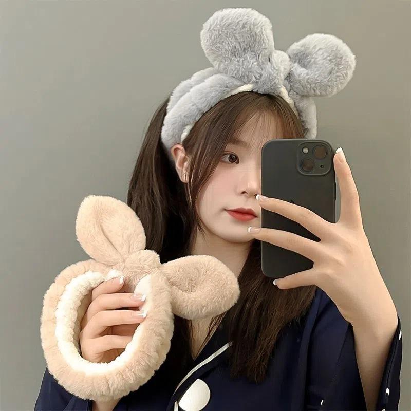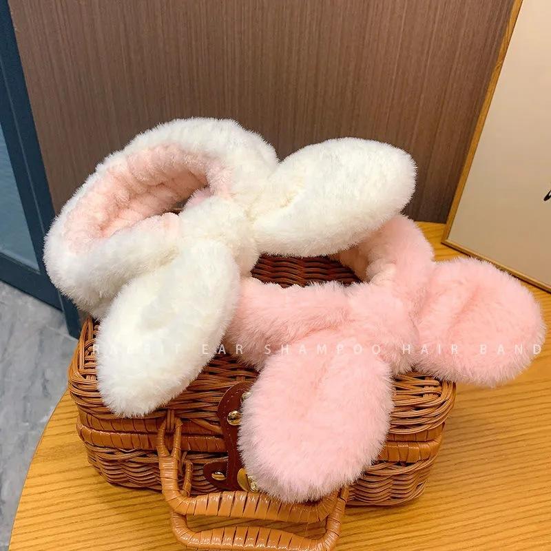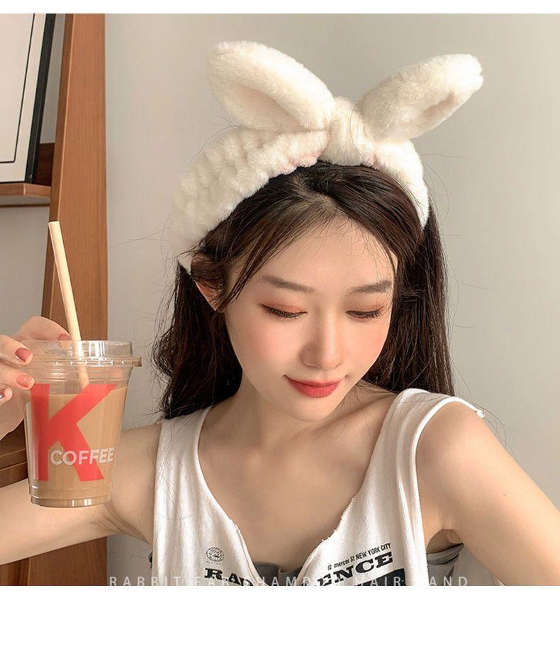 Banda para el cabello de felpa con orejas de conejo para mujer, bonita banda para el cabello, diadema coreana sencilla para mascarilla facial
