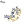 Anillo de joyería exagerado con atmósfera flash, temperamento de diamante, grupo de mujeres con circonita, mariposa de apertura, ajustable