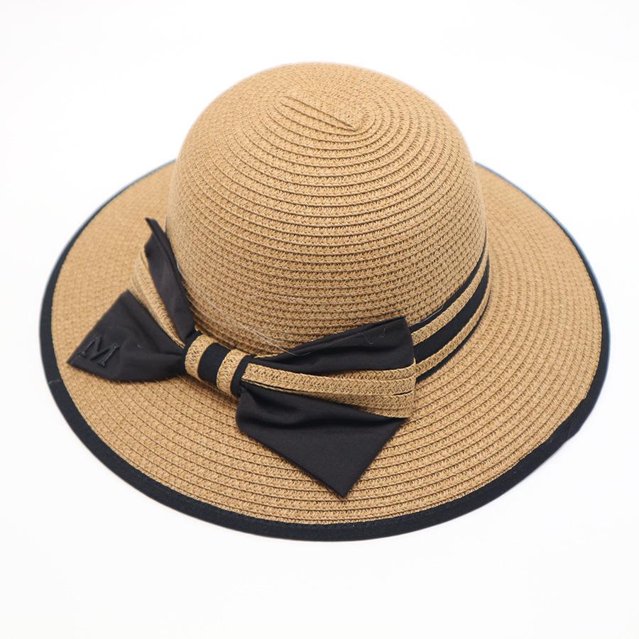Sombrero de paja de ala ancha para mujer, sombrero de verano para exteriores, playa, protector solar, viajes, playa, parasol con lazo, combina con todo, estilo coreano