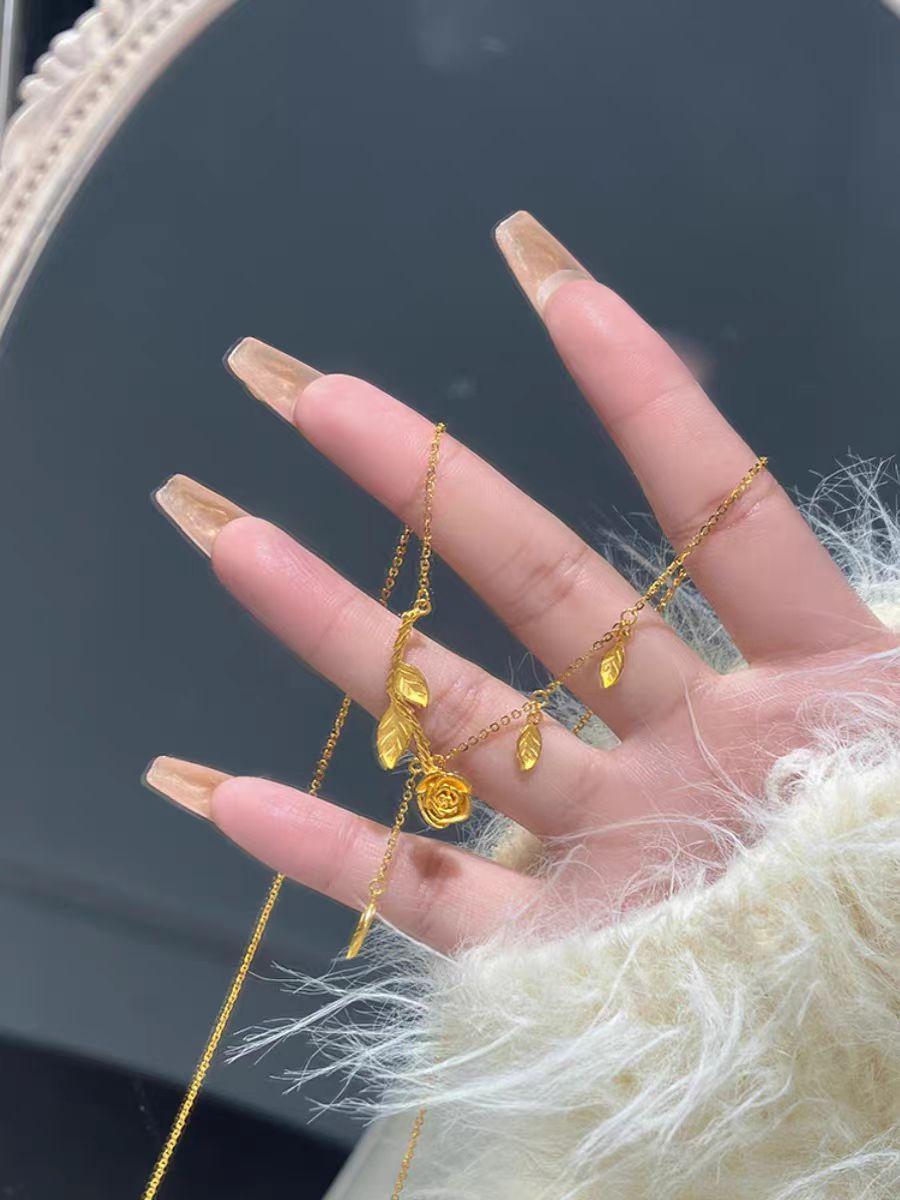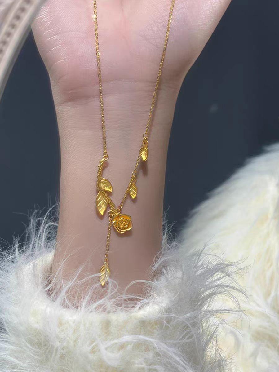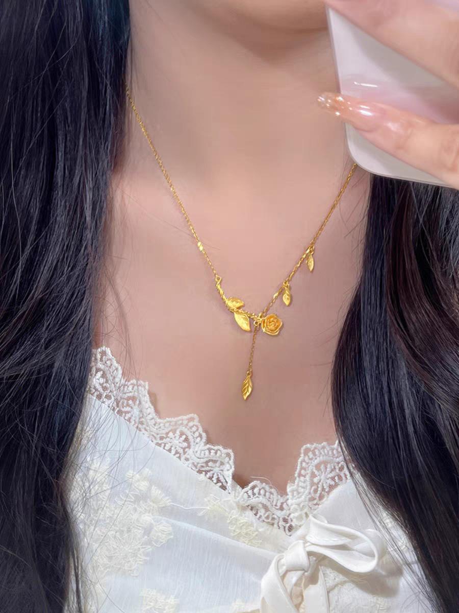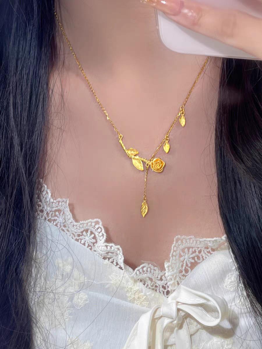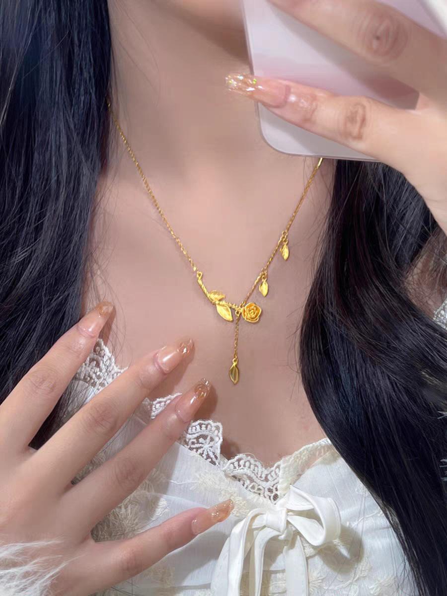 Collar Rosa Dorada Mujer Nicho Diseño Dulce Cool 2024 Nuevo Borla Collar Clavícula Dorada Accesorios Mujer
