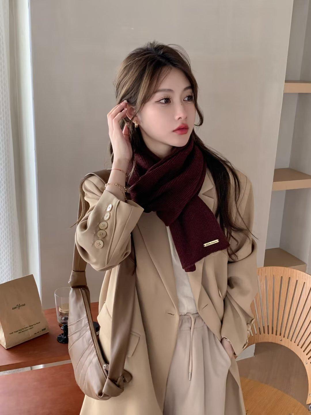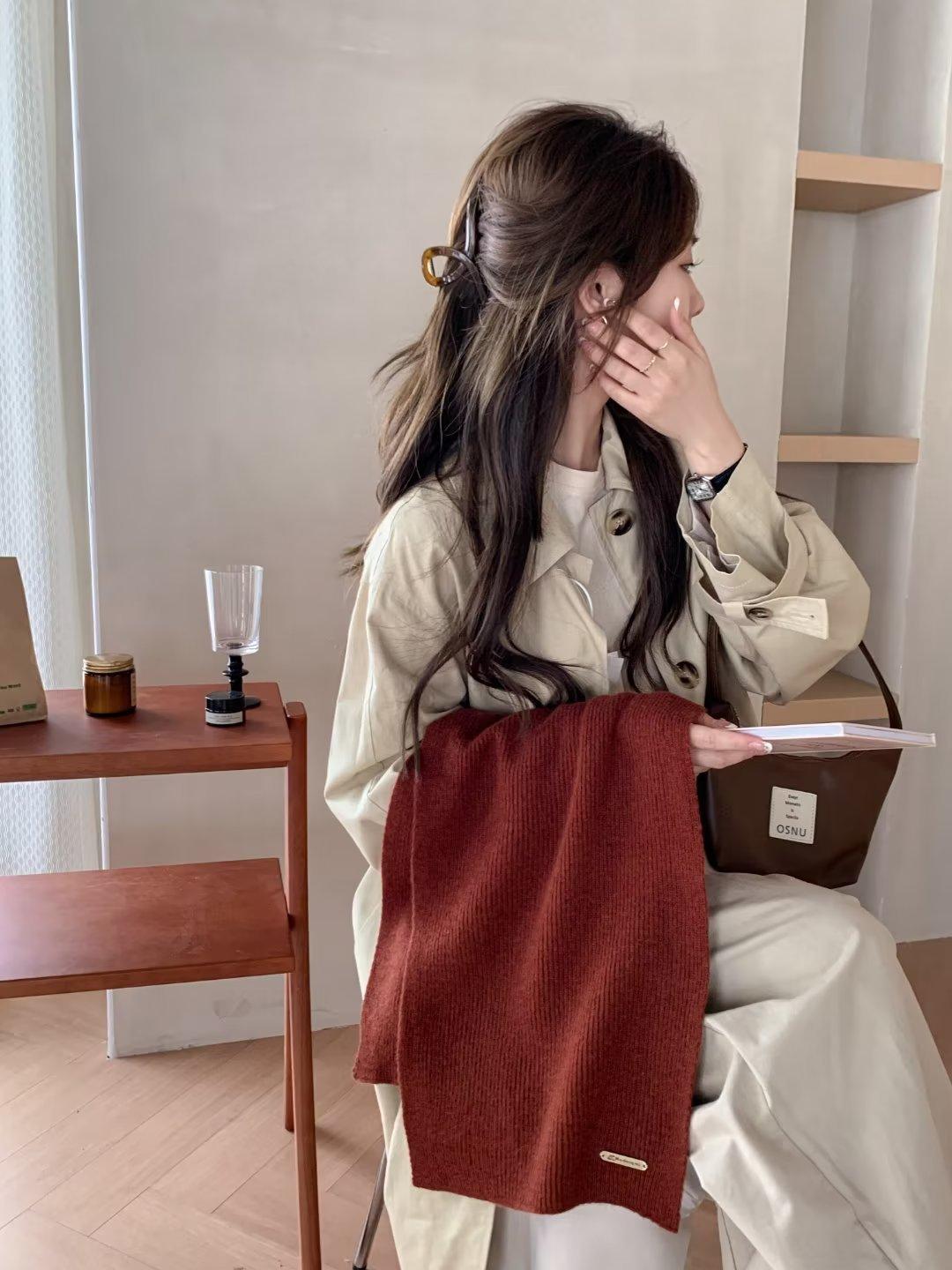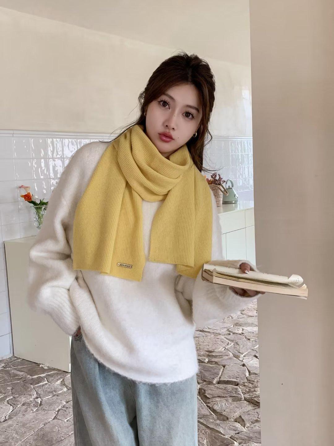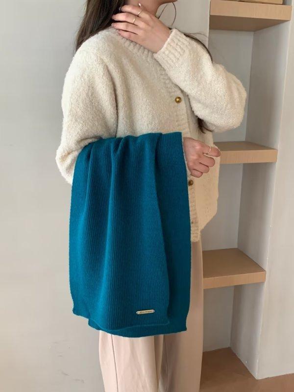 Bufanda tejida de lana merino 100% para pareja de hombres y mujeres, otoño e invierno, cálida, dopamina, color sólido, suave, glutinosa, suave