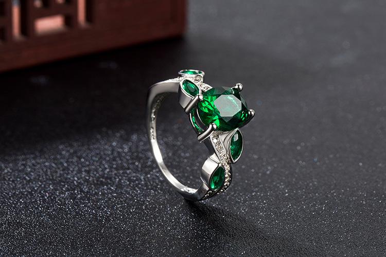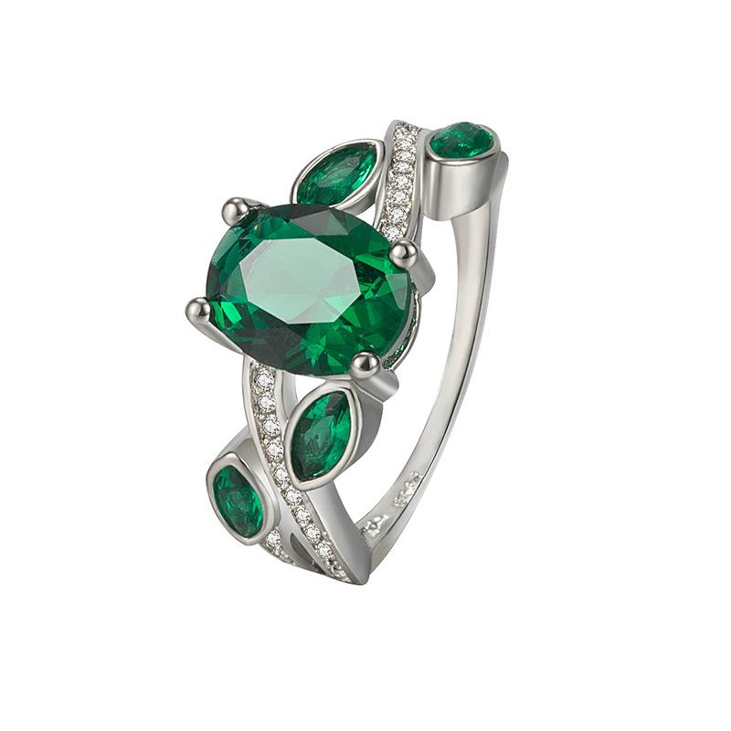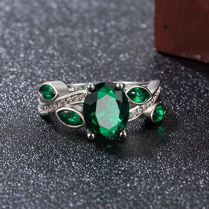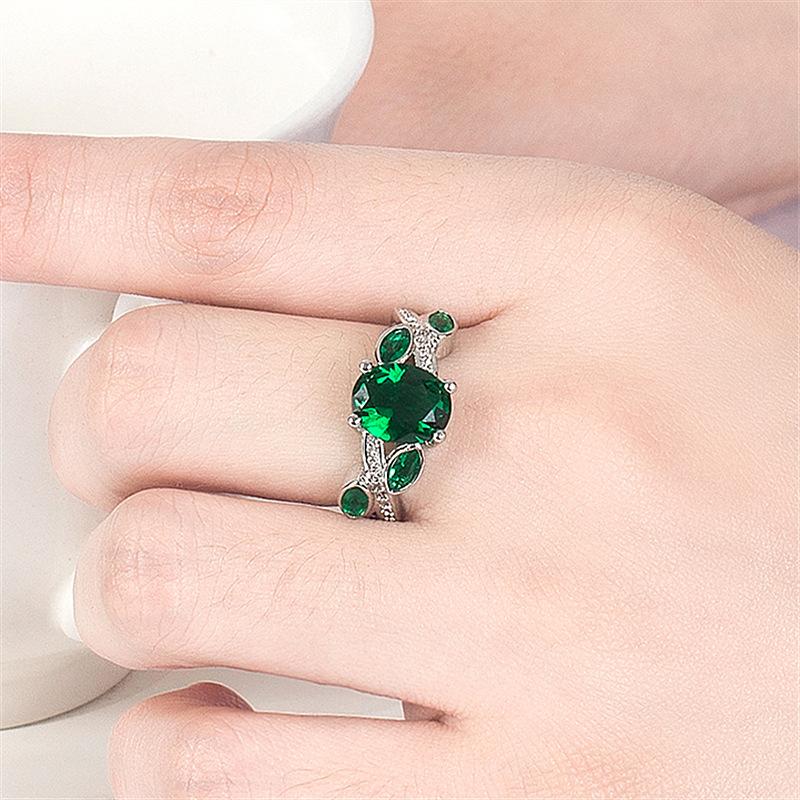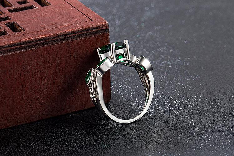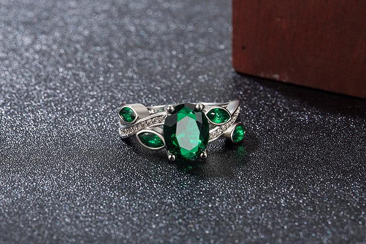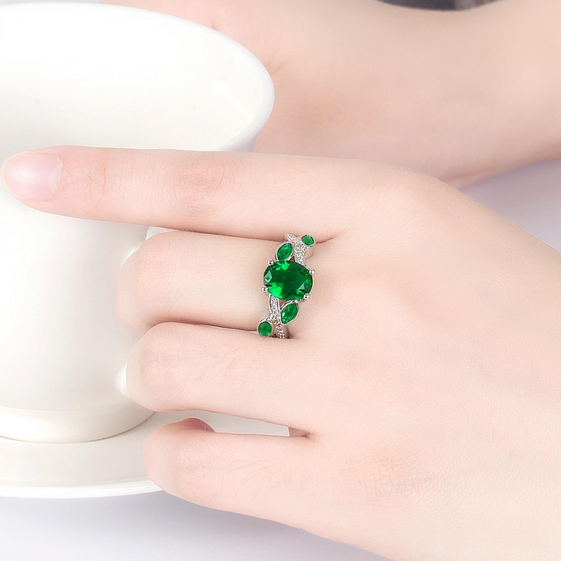 Wish Aliexpress Anillo de Flor y Hoja de Diamante Verde de Venta Caliente E-Commerce Transfronterizo Popular Europeo y Americano Marquesa con Incrustaciones Joyería de Mano para Dedo
