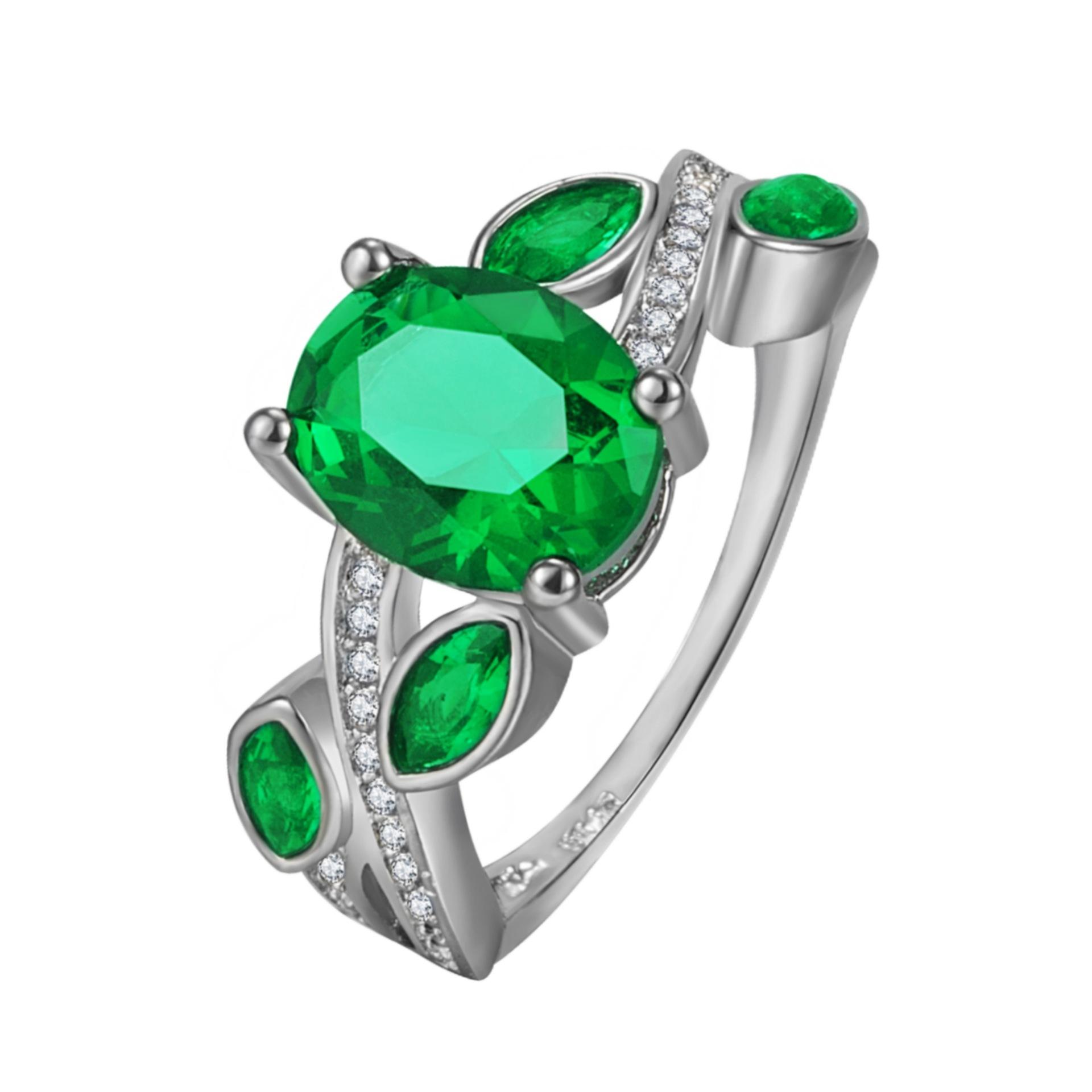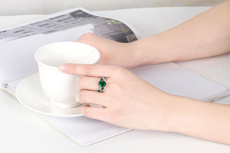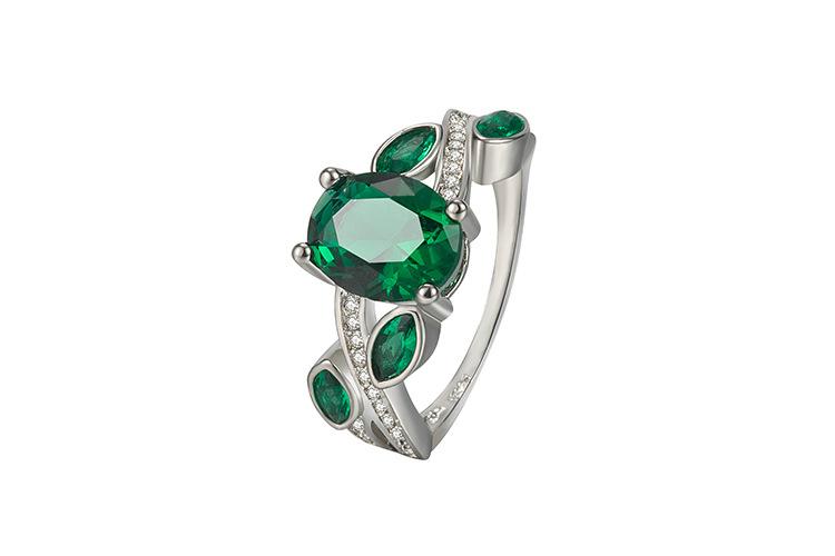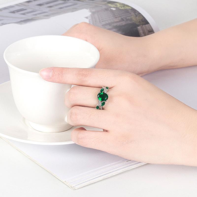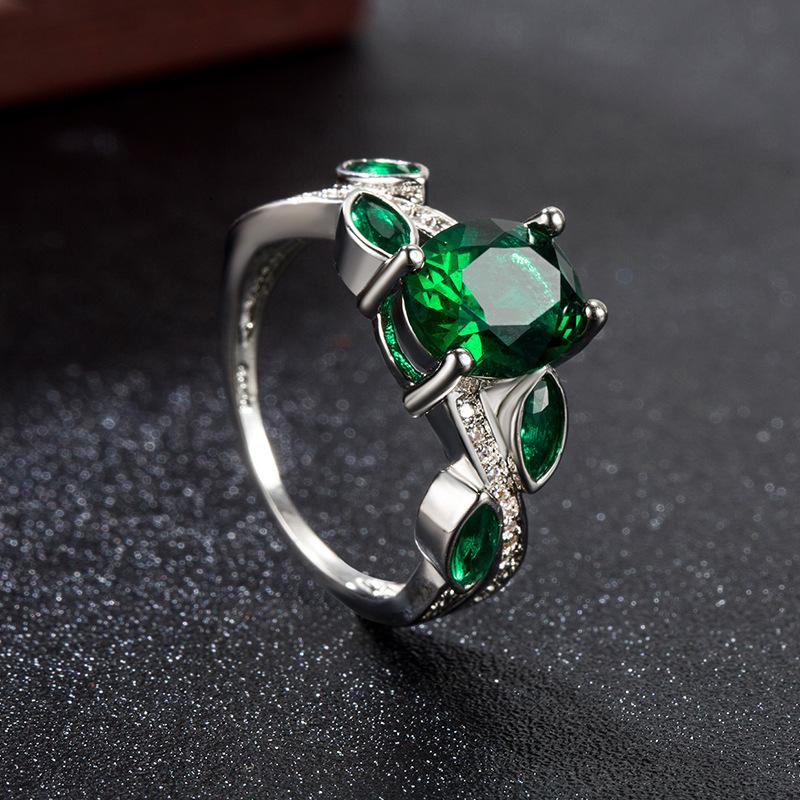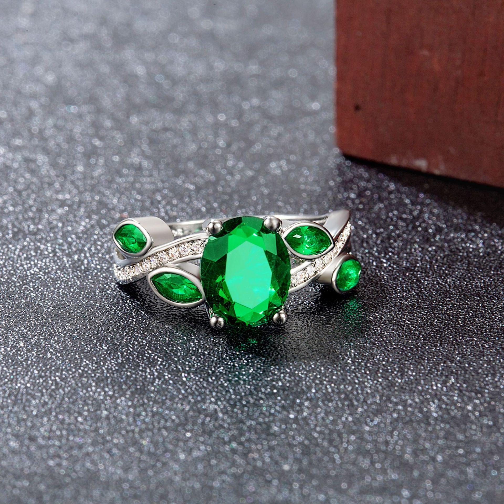 Wish Aliexpress Anillo de Flor y Hoja de Diamante Verde de Venta Caliente E-Commerce Transfronterizo Popular Europeo y Americano Marquesa con Incrustaciones Joyería de Mano para Dedo