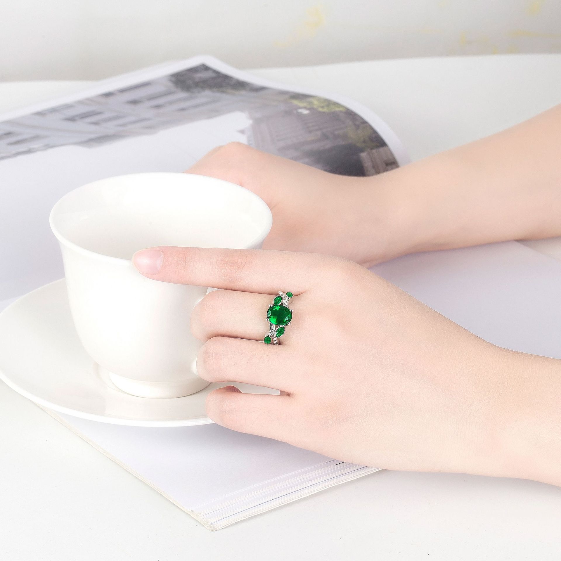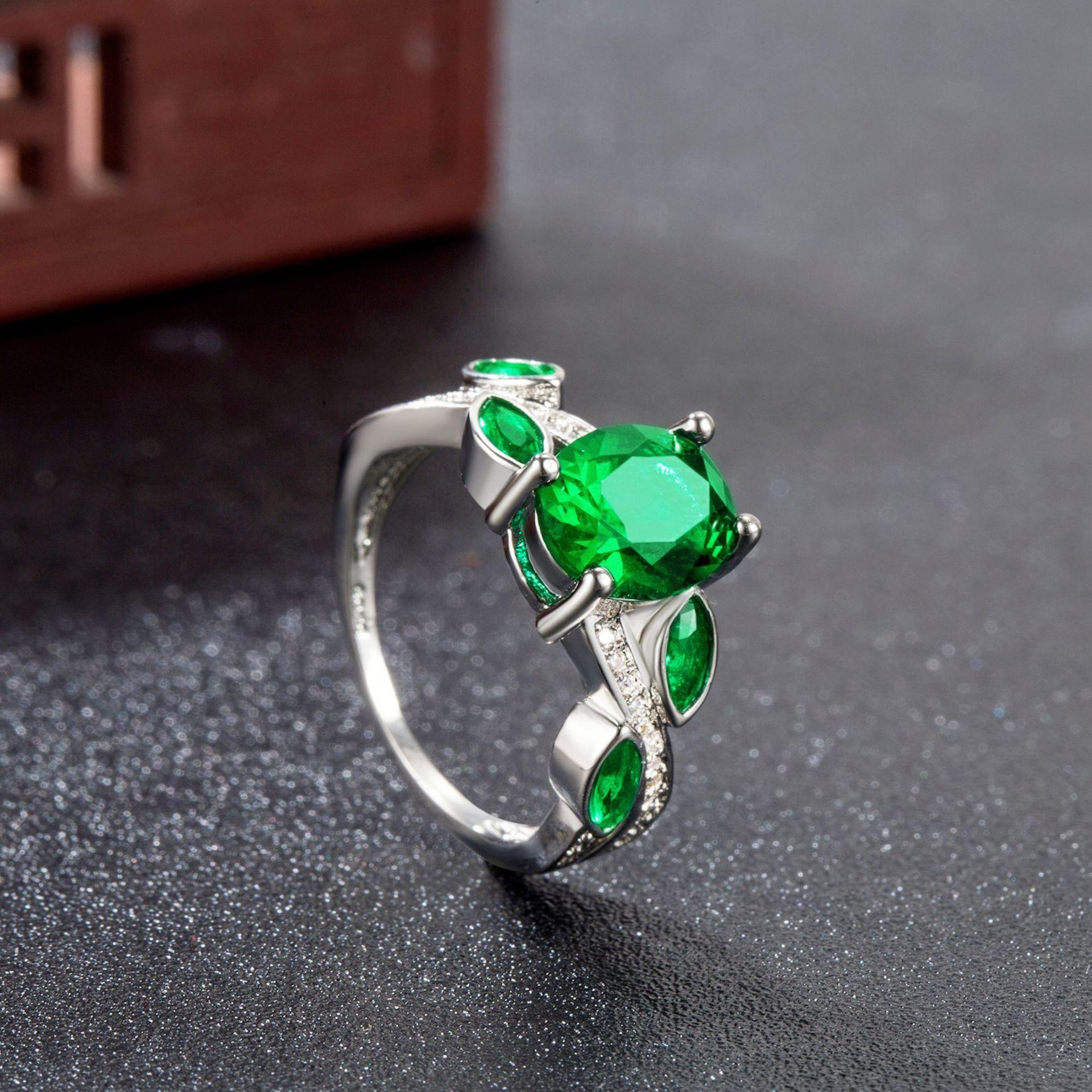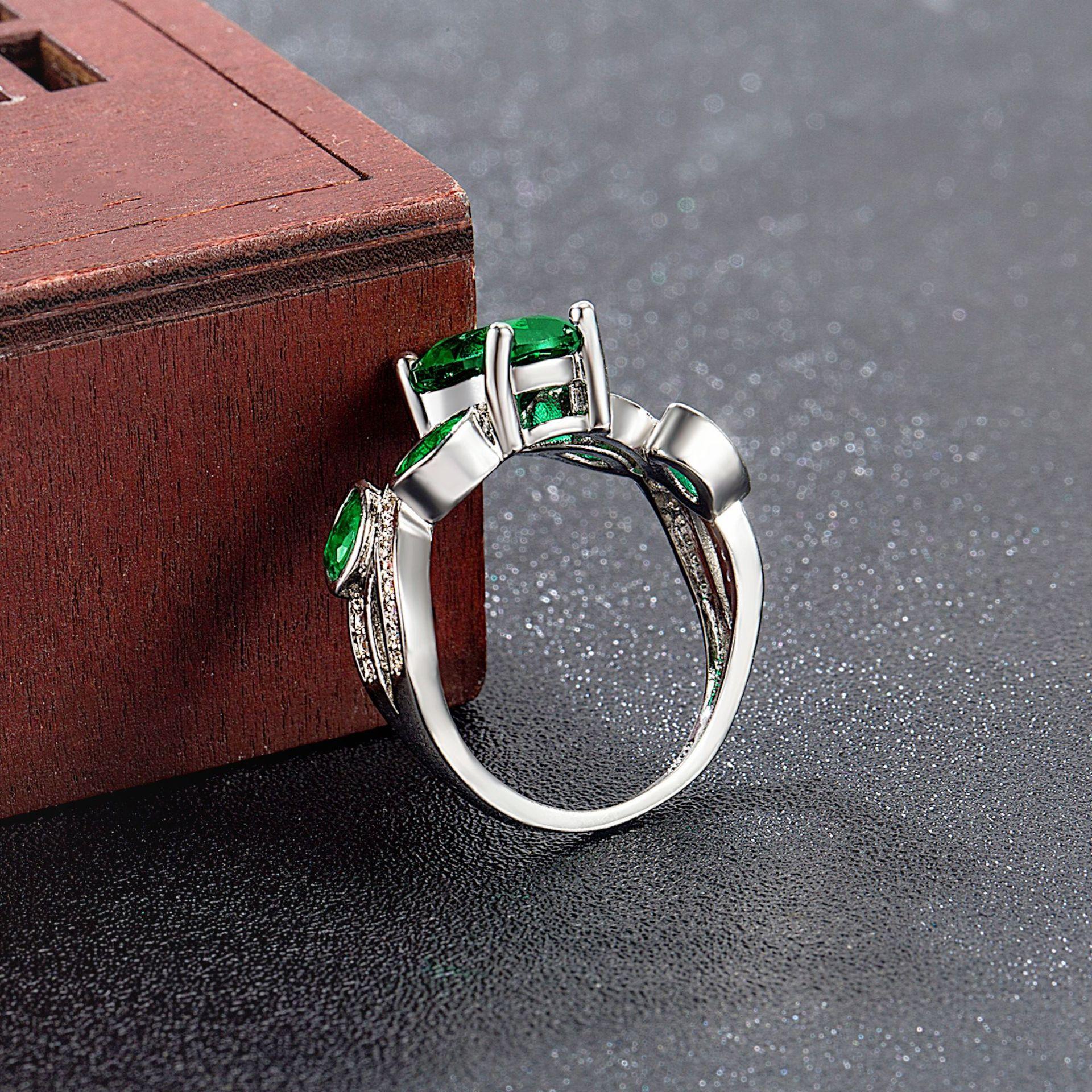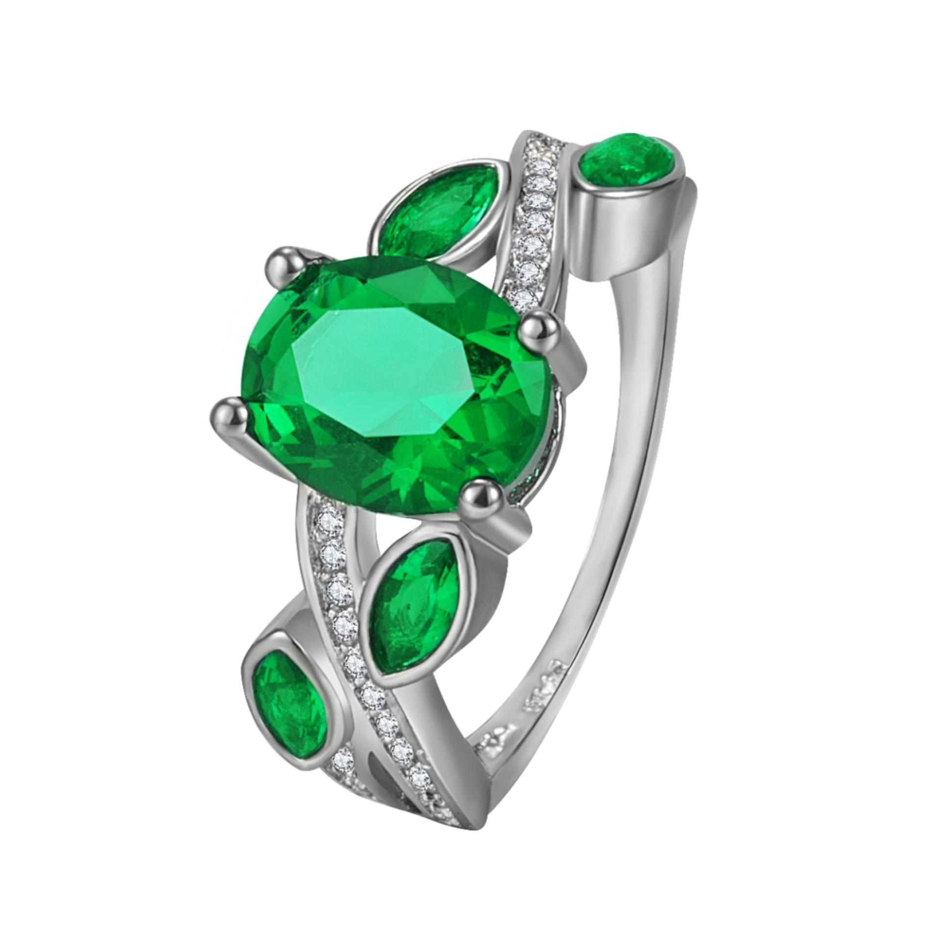 Wish Aliexpress Anillo de Flor y Hoja de Diamante Verde de Venta Caliente E-Commerce Transfronterizo Popular Europeo y Americano Marquesa con Incrustaciones Joyería de Mano para Dedo