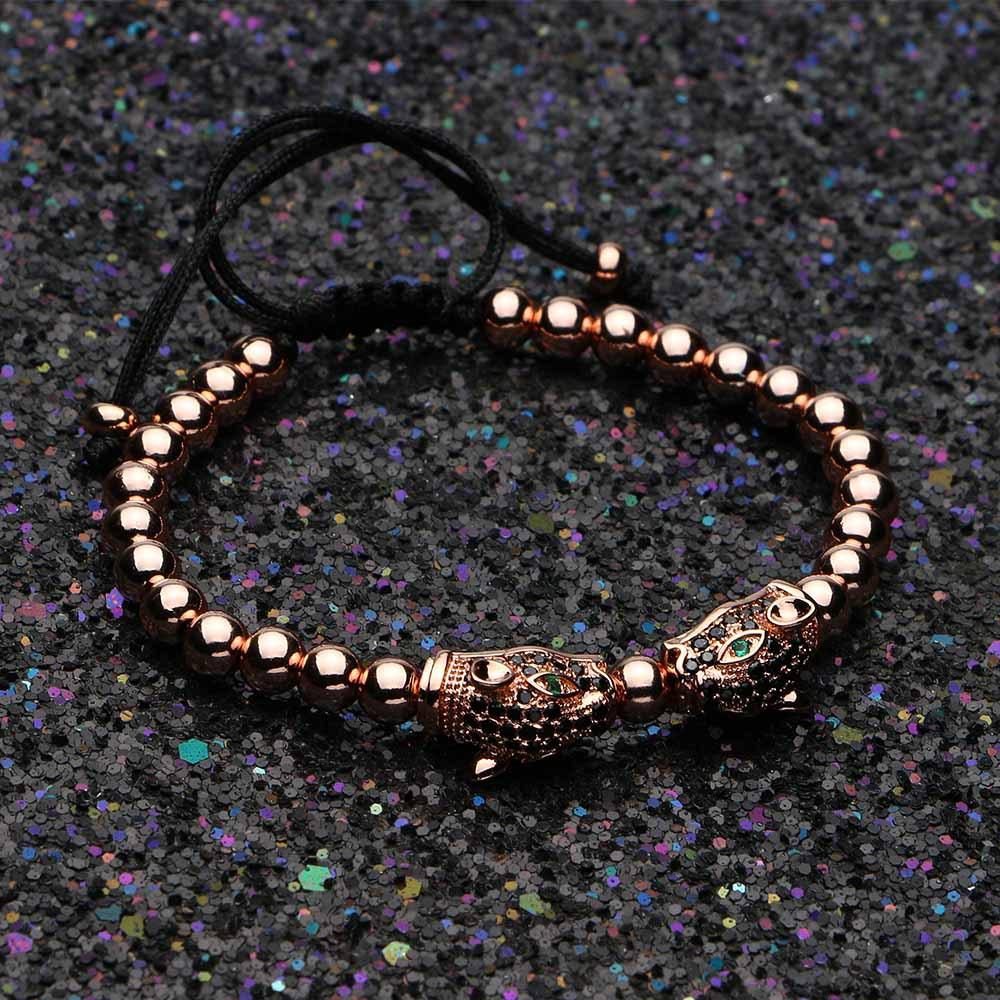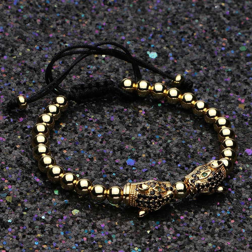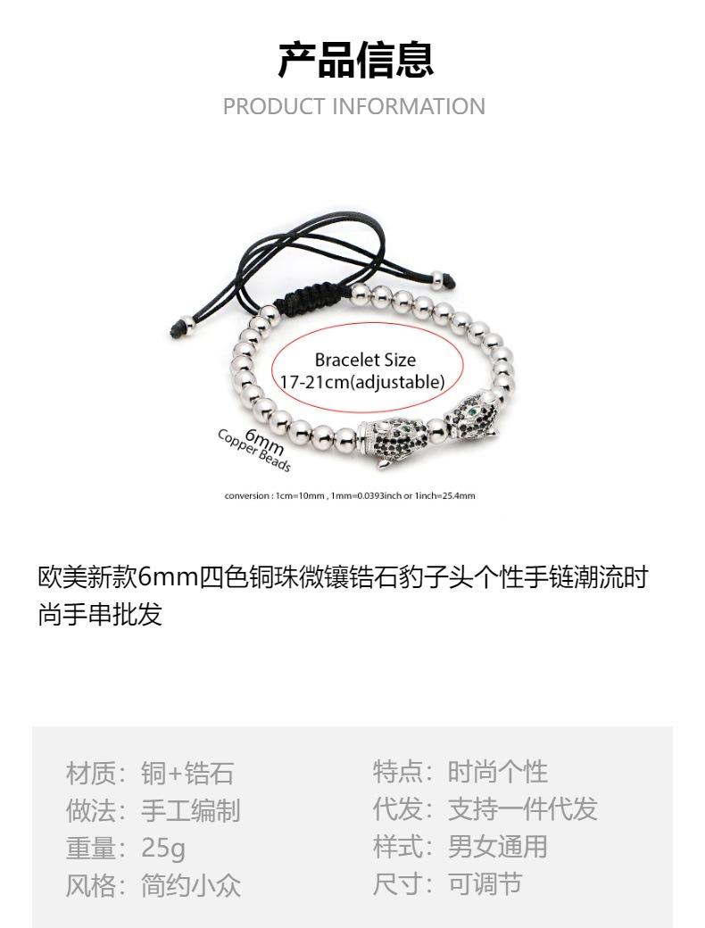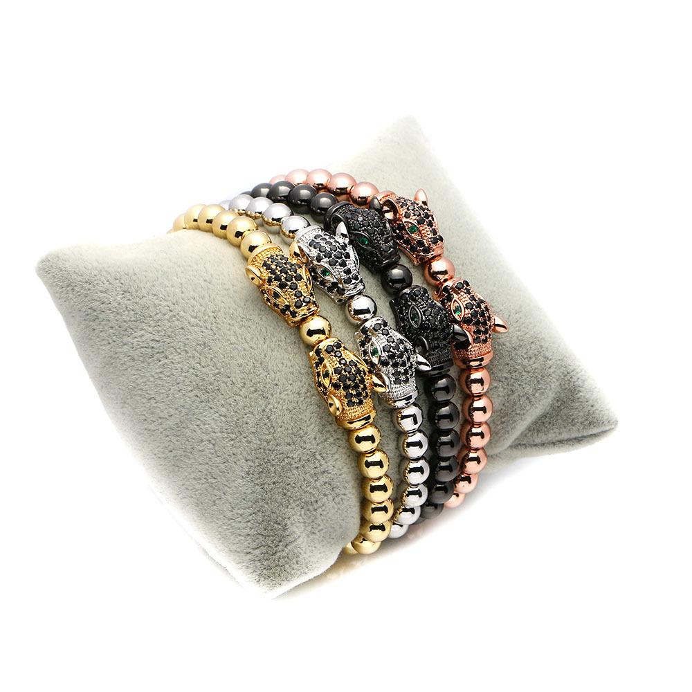 Europa y Estados Unidos nuevo 6 mm cuentas de cobre de cuatro colores micro incrustaciones de circonita cabeza de leopardo pulsera de personalidad pulsera de moda tendencia al por mayor